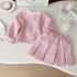 Set elegant de 2 piese din stofă boucle cu blazer cu nasturi cu perle și fustă plisată Sugarlace