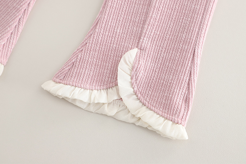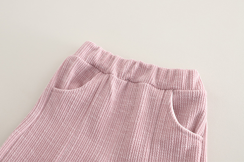 – Pantalon cu talie elastică și buzunărele, cu partea de jos evazată, terminată cu benzi plisate pentru un plus de eleganță.