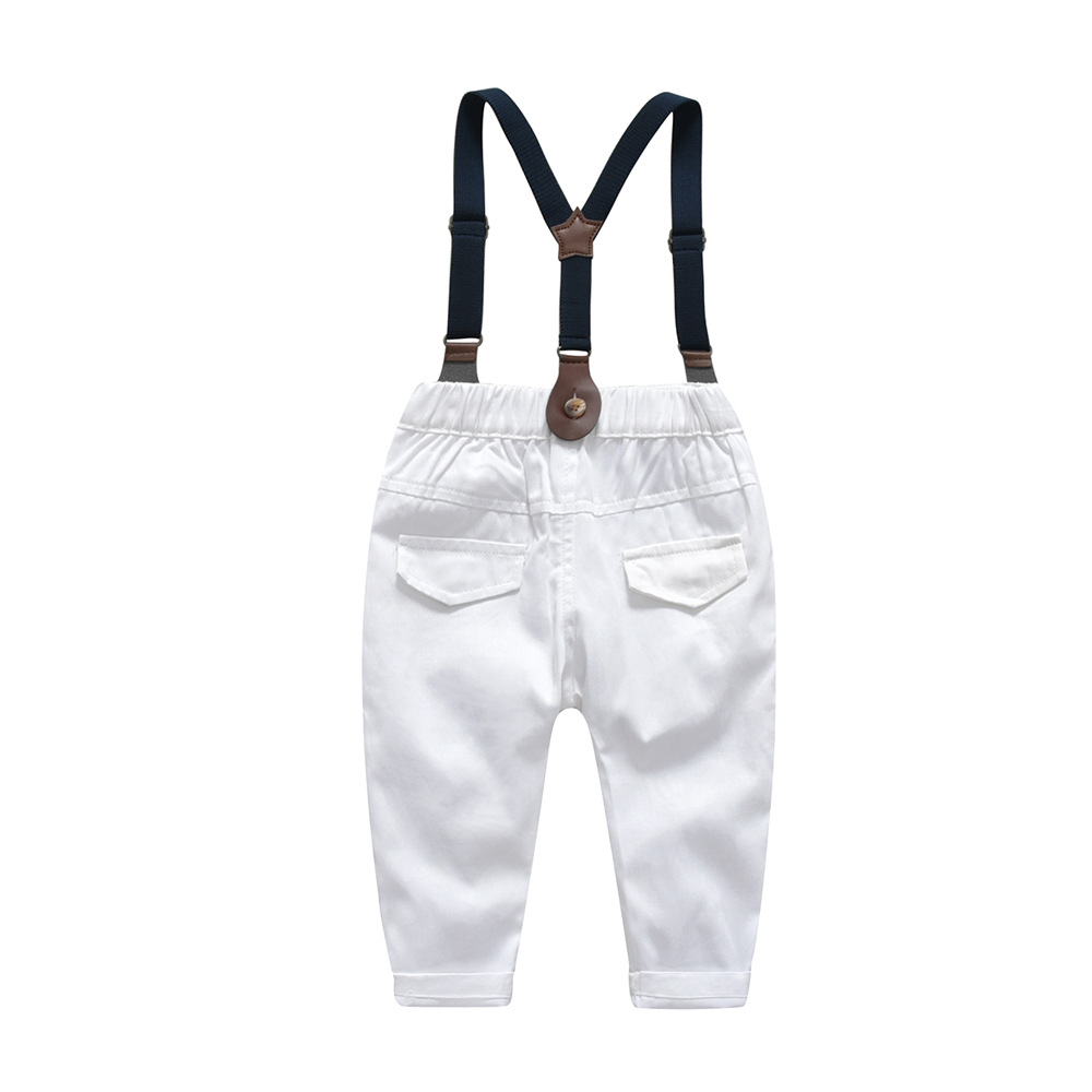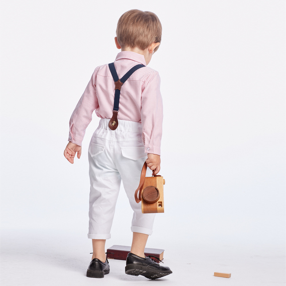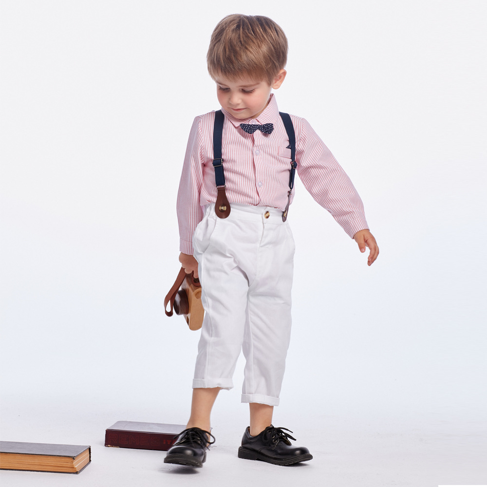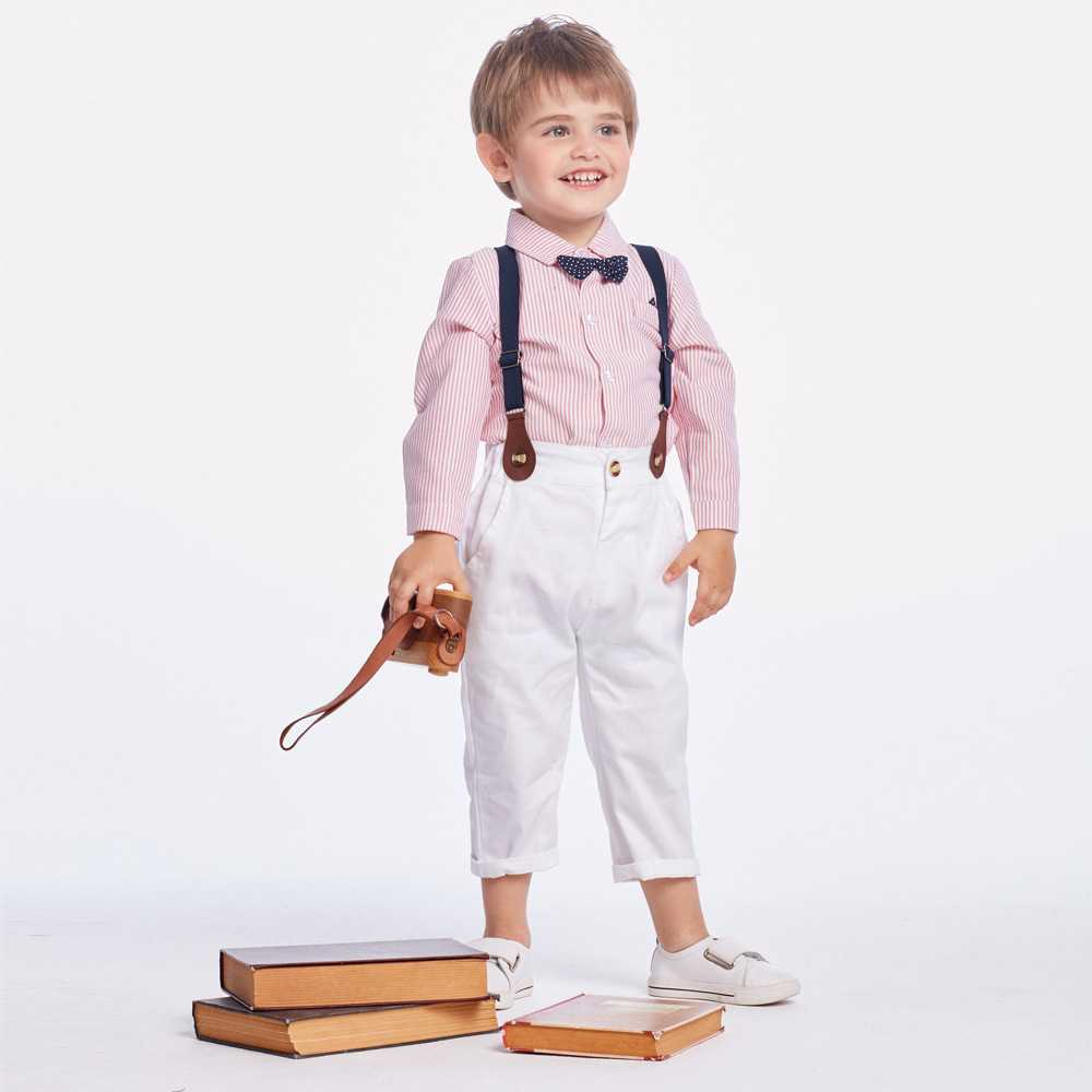 Set elegant de 3 piese din cămașă în dungi cu papion aplicat, pantaloni și bretele Little Gentleman