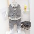 Set elegant de 4 piese în carouri, format din vestă, cămașă, papion și pantaloni Classy Tux Grey