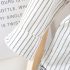 -Cămașă din bumbac cu dungi verticale alb-negru, cu guler clasic și mânecă lungă. Extrem de confortabilă, constituie baza stilată a întregului set.