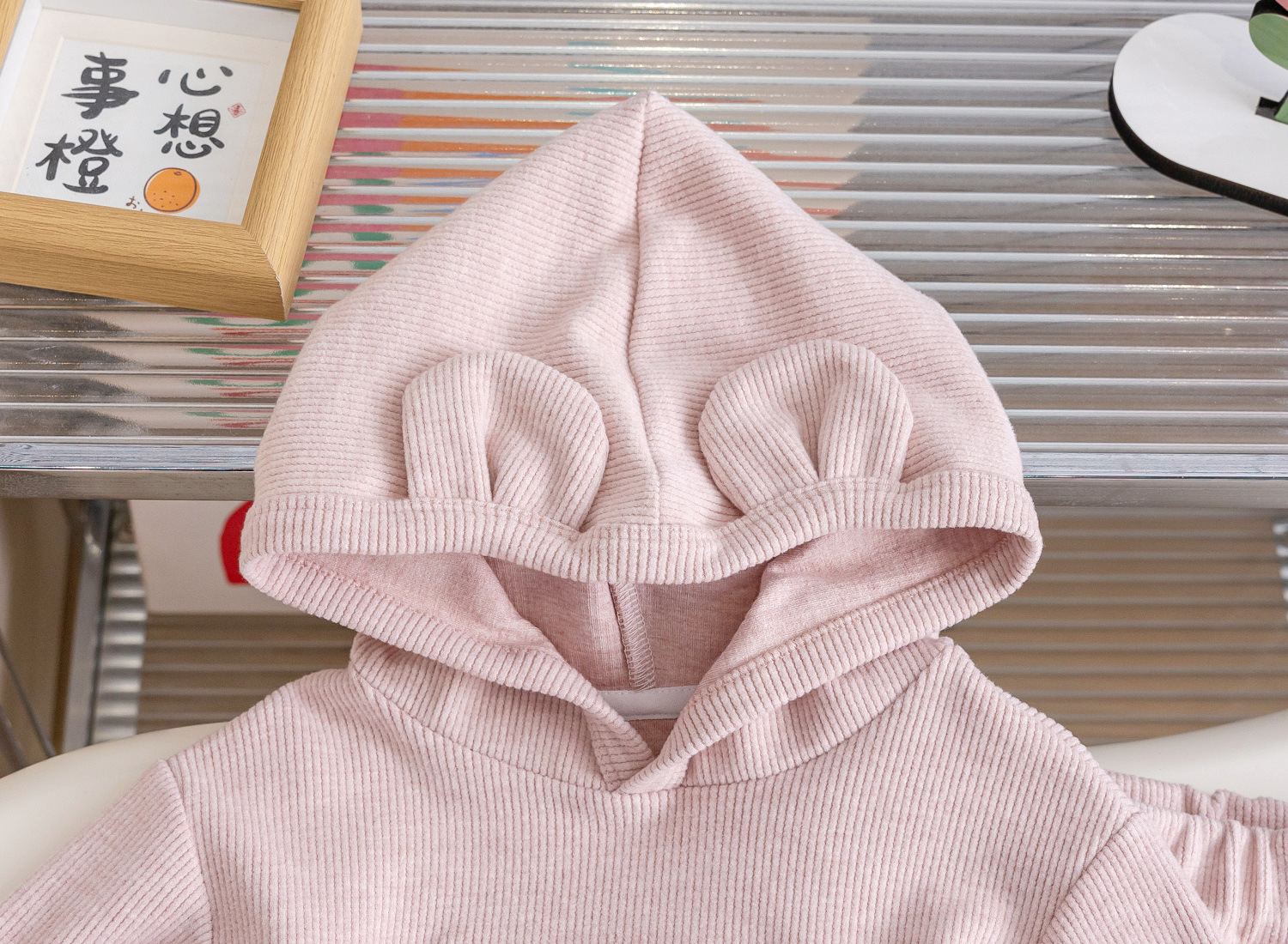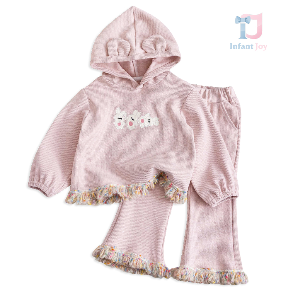Set extravagant de 2 piese cu bluză/hanorac cu glugă, urechiușe 3D și pantaloni Candy Bunny