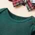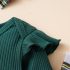-Body din tricot reiat din bumbac, de culoare verde, cu volănașe la umeri și închidere cu capse în partea de jos pentru o schimbare ușoară.