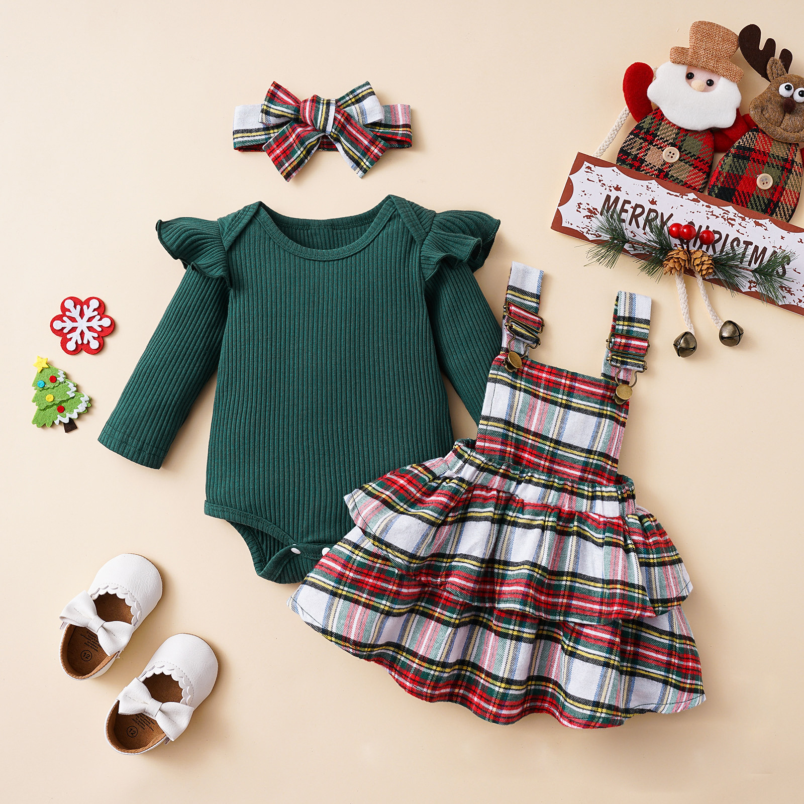 Set festiv de 3 piese cu body, sarafan și bentiță pentru cap Christmas Joy Pinafore Green