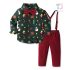 Set festiv de 4 piese cu cămașă cu model de Crăciun, papion, pantaloni și bretele Festive Icon Green