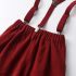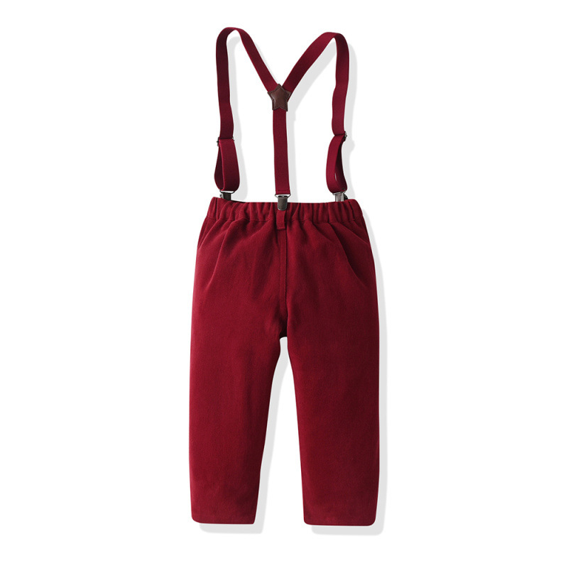 – Bretele – reglabile, tot în culoare bordo, cu detalii elegante din piele maro. Se închid ușor și sigur, accentuând farmecul oficial al setului.