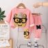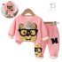 Set matlasat de 2 piese cu aplicații de pluș și elemente 3D Bear Glasses Pink