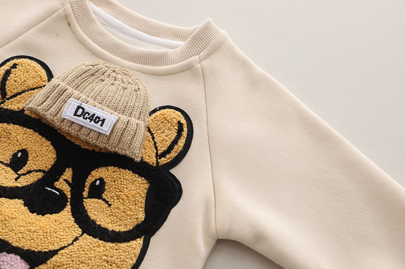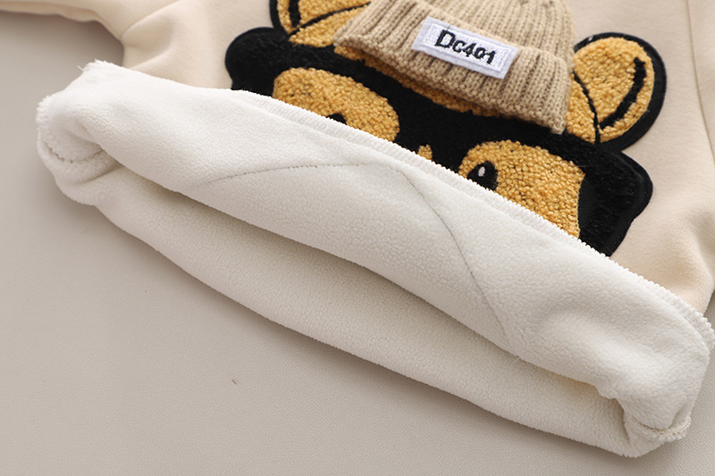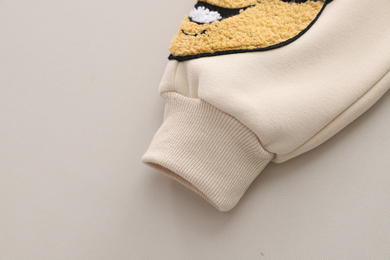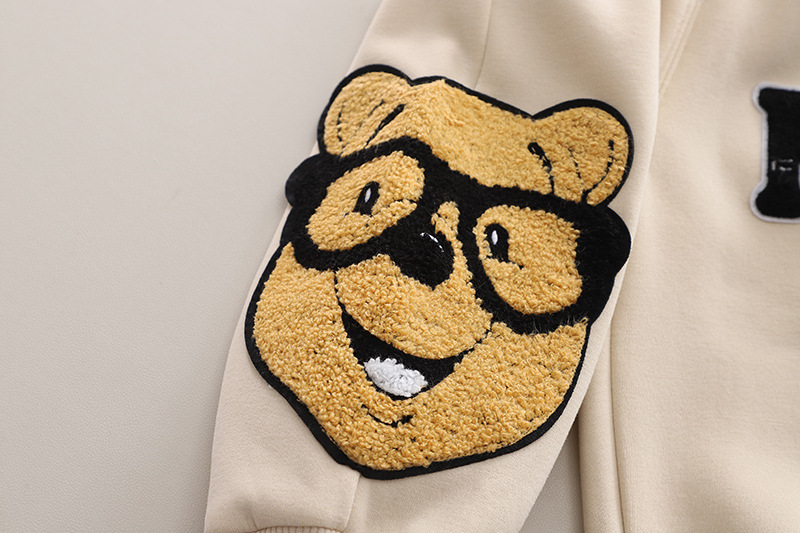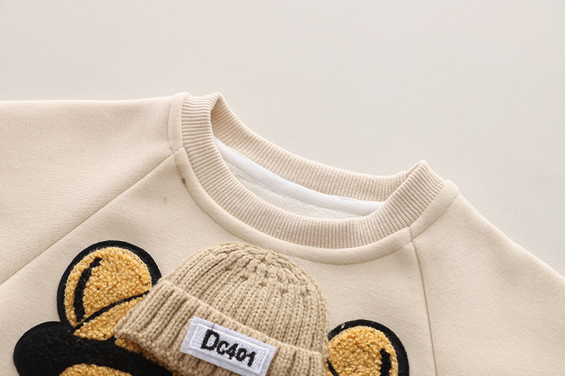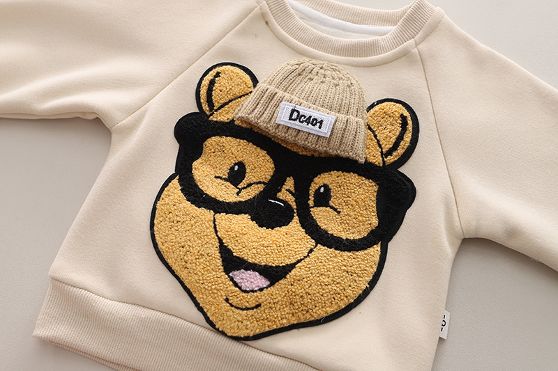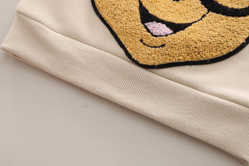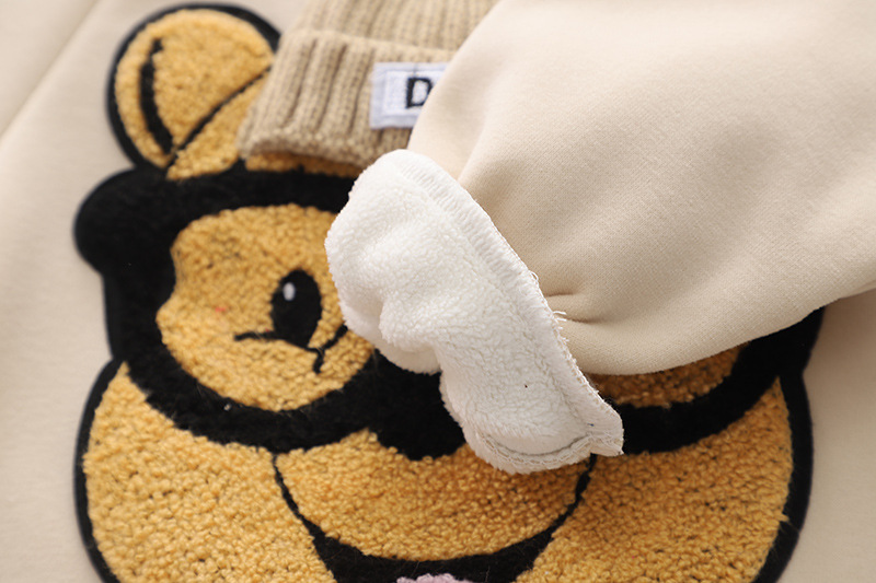 -Bluză/sweatshirt din material moale și căptușit, de înaltă calitate, de culoare crem. Model cu croială standard, cu o mare aplicație de pluș în partea din față, reprezentând un ursuleț, pentru un aspect distinctiv.