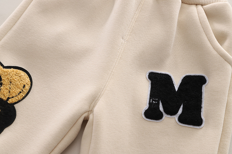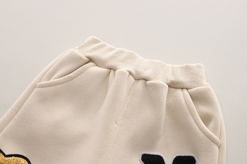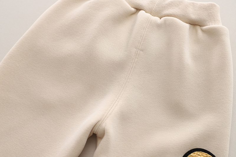 -Pantaloni cu elastic în talie și la glezne pentru confort, două buzunare și detalii din pluș pe craci ca accent.