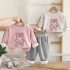 Set matlasat de 2 piese cu bluză/hanorac cu aplicații și pantaloni Softy Bear Pink