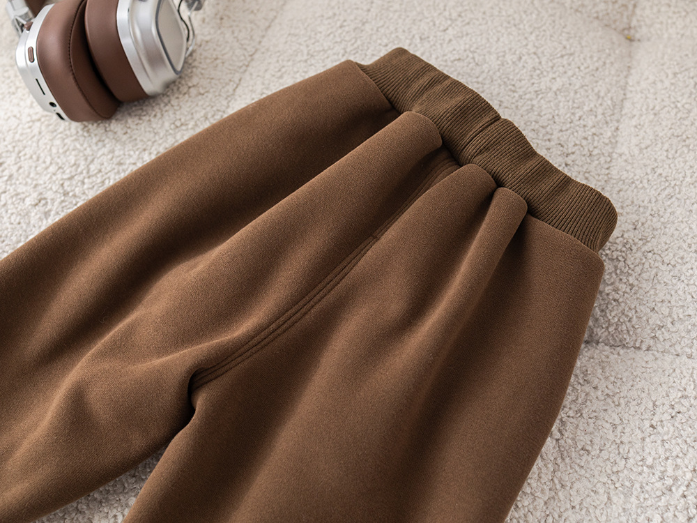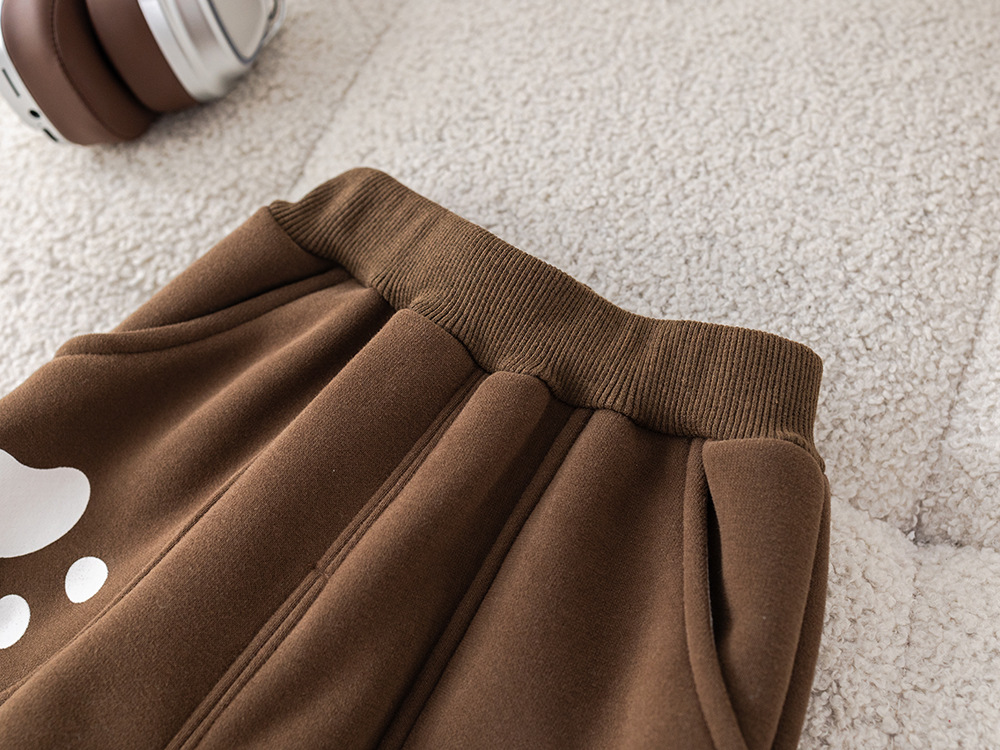 -Pantalon în aceeași culoare, cu talie elastică și buzunare practice. Pe acestea sunt aplicate imprimeuri cu urme de lăbuțe, care adaugă o notă jucăușă și completează tematica de ursuleț. Manșetele elastice de la tiv păstrează căldura și oferă libertate totală de mișcare.