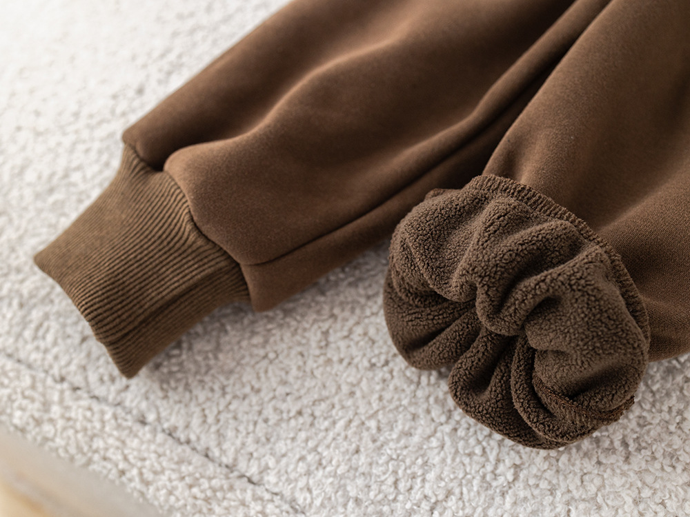 Set matlasat de 2 piese cu bluză/hanorac cu buzunar tip „cangur”, elemente 3D și pantaloni Chocolate Tiny Bear