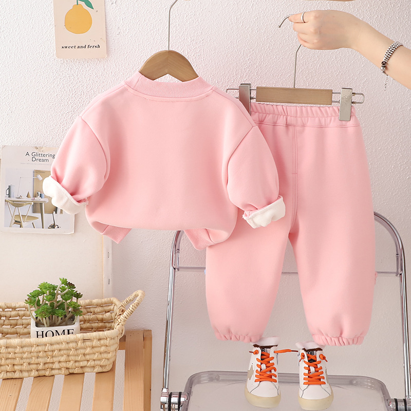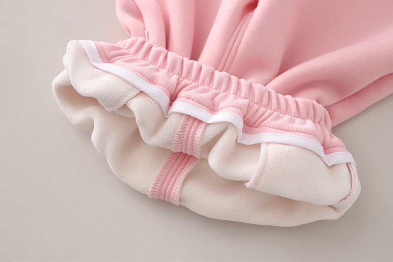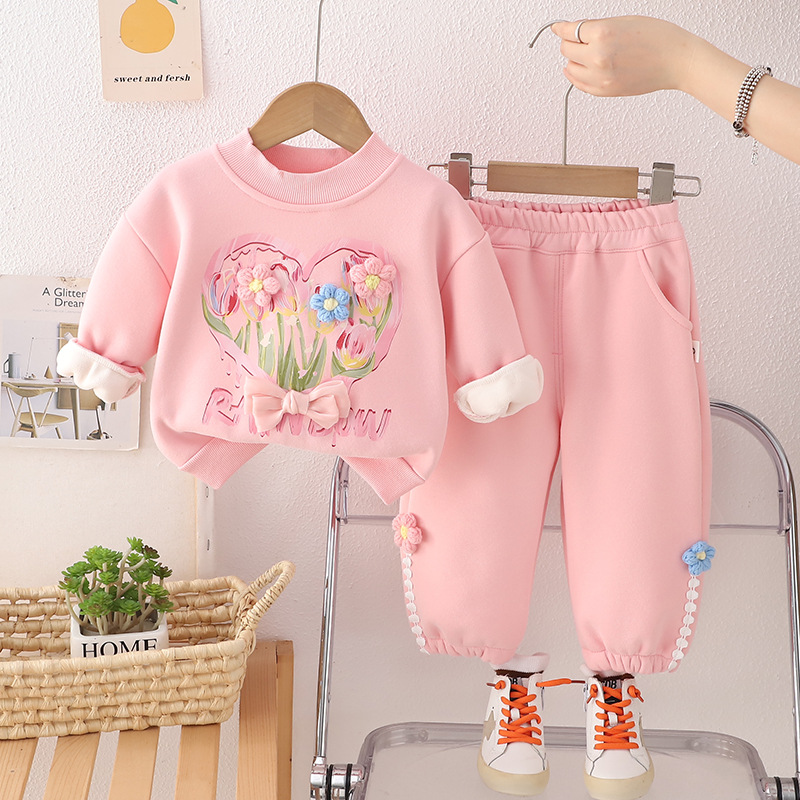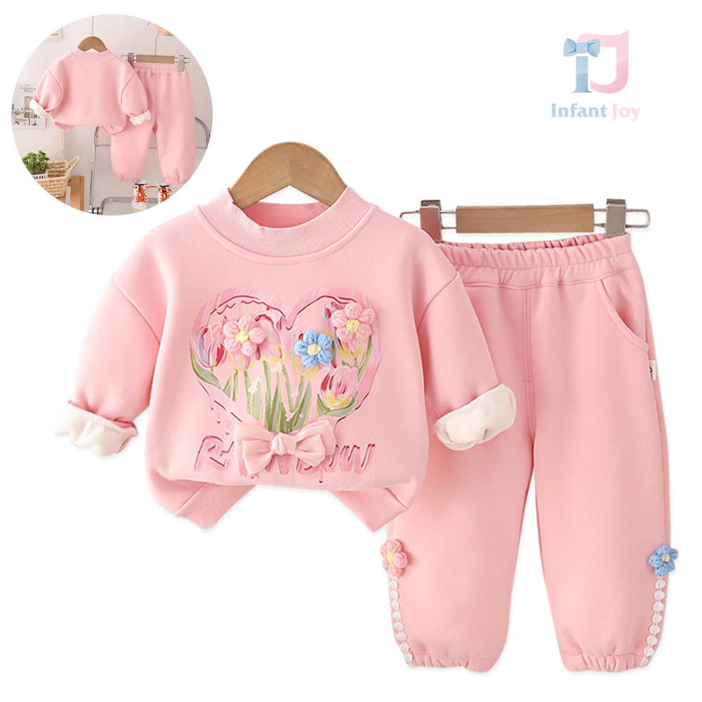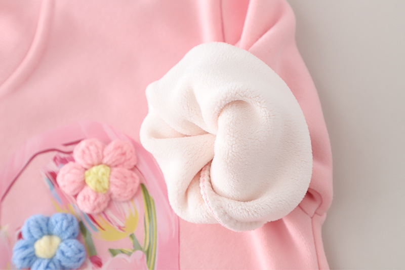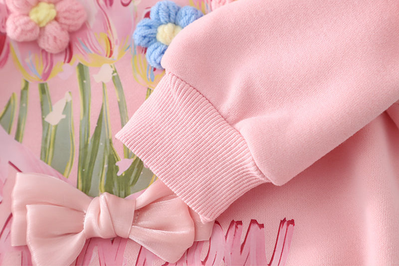 Set matlasat de 2 piese cu bluză/hanorac cu elemente 3D frumoase și pantaloni Rainbow Flowers Pink