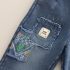 – Pantalon din denim clasic albastru, cu petice decorative care adaugă personalitate și un aer jucăuș. Modelul are o căptușeală moale pe interior, care oferă căldură în zilele reci. Țesătura rezistentă și croiala practică fac pantalonul potrivit pentru joacă și activități zilnice.