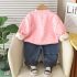 Set matlasat de 2 piese cu bluză/hanorac cu imprimeu leopard și pantaloni din denim Mini Panther Pink