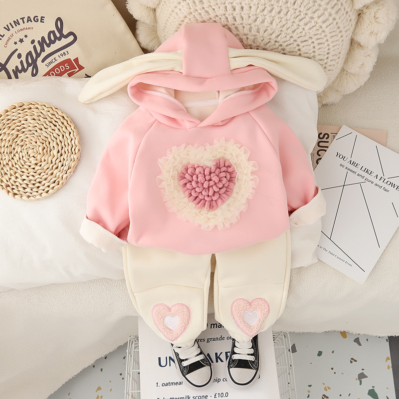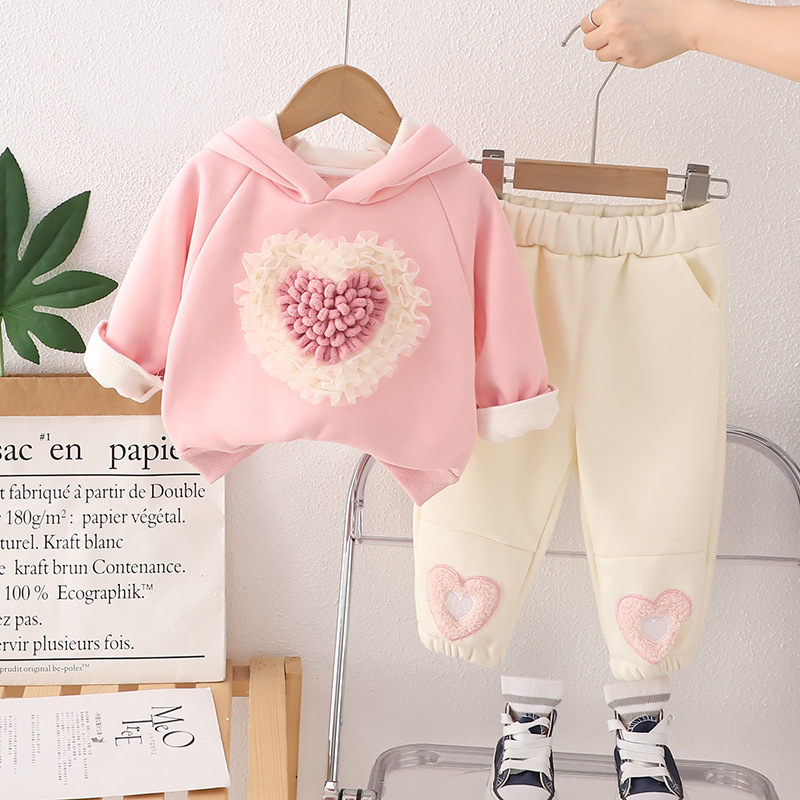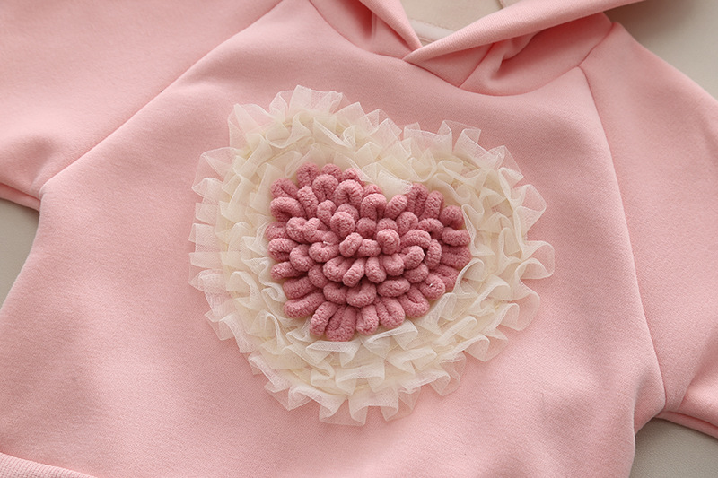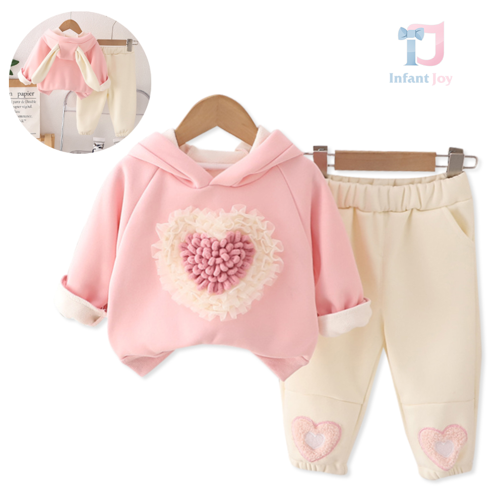 Set Premium Matlasat de 2 piese cu Hanorac și Aplicații 3D Cuddly Heart Pink