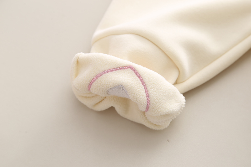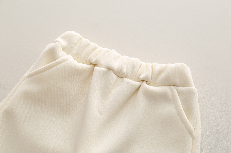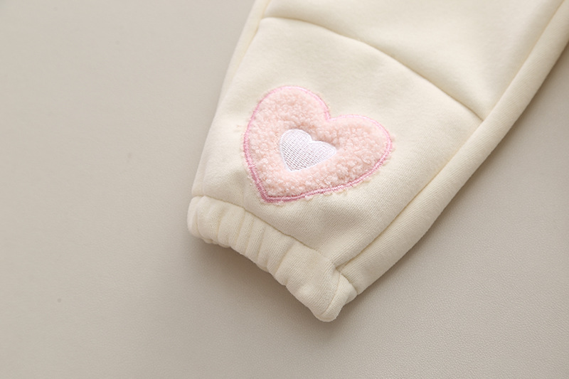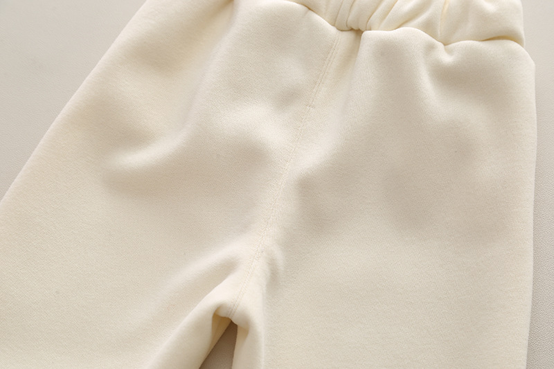 – Pantalon comod, în culoare crem, cu elastic la talie și la glezne, vată interioară, două buzunare frontale + aplicații irezistibile din pluș care completează perfect look-ul.