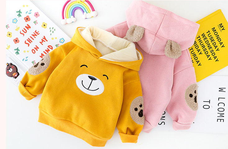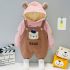 -Hanorac de culoare roz, cu căptușeală adăugată. Realizat într-o croială standard, cu glugă și urechi plușate 3D care completează modelul. Mânecile sunt decorate cu aplicații care adaugă un aspect unic, iar manșetele elastice oferă confort suplimentar și protecție.