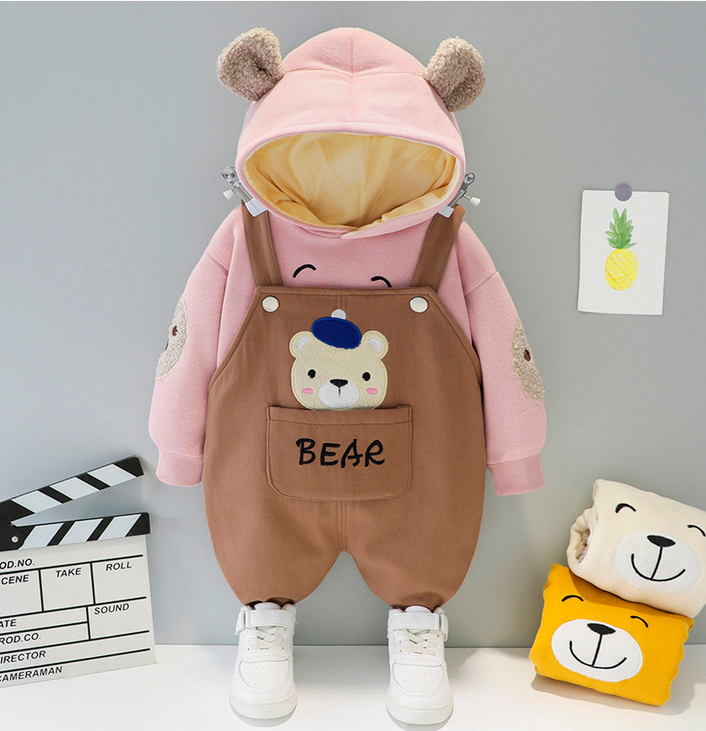 Set matlasat de 2 piese cu salopetă și hanorac cu glugă și urechi 3D Bear in France Pink