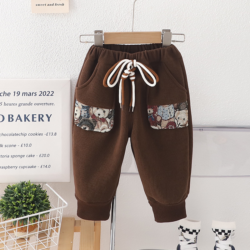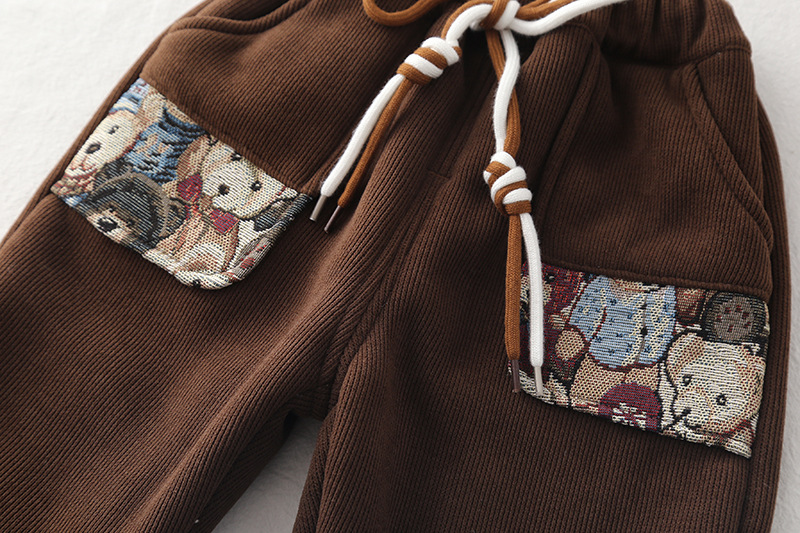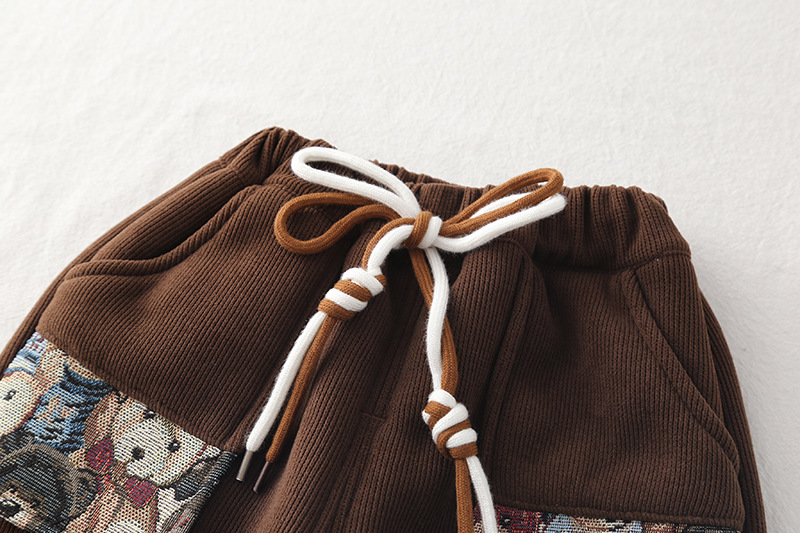 -Pantaloni comozi și călduroși, cu căptușeală, asortați cu partea de sus. Dispun de elastic în talie, șnururi decorative, două buzunare și o aplicație distinctivă în partea din față.