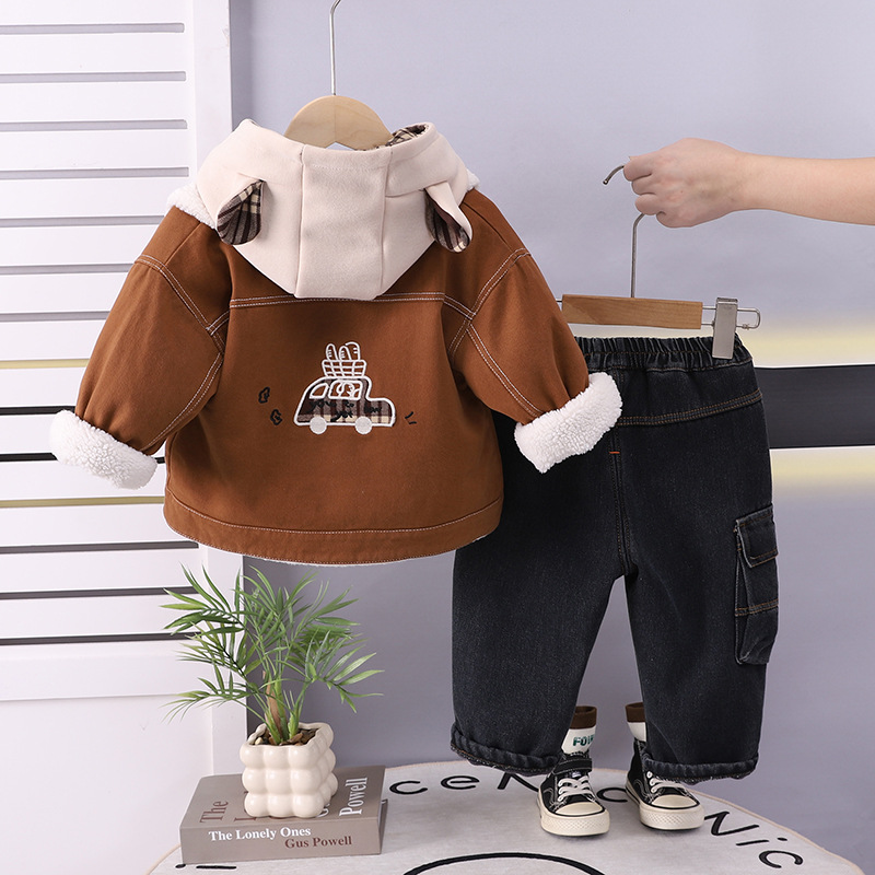 Set matlasat de 3 piese cu geacă, bluză/hanorac cu glugă și pantaloni din denim Cozy Ranger