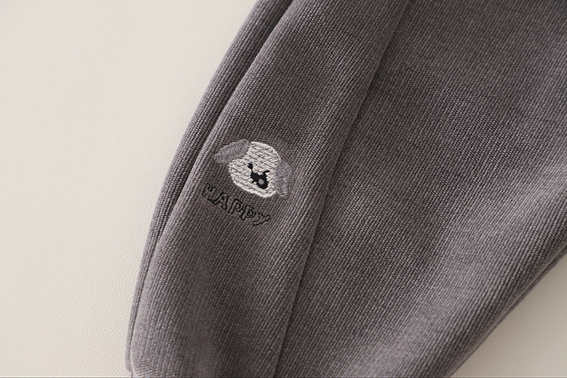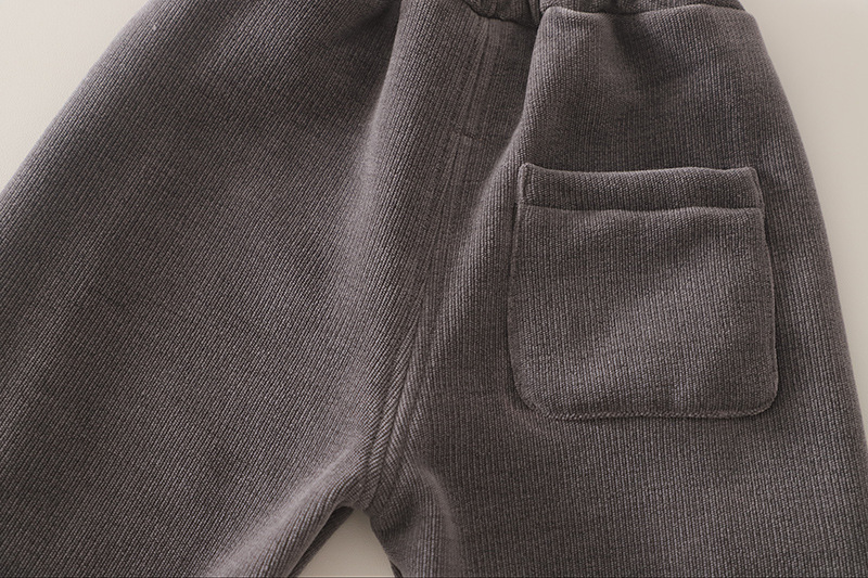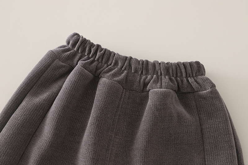 -Pantalon în gri grafit, confecționat dintr-un material dens și plăcut, cu talie elastică pentru îmbrăcare ușoară și confort suplimentar.
