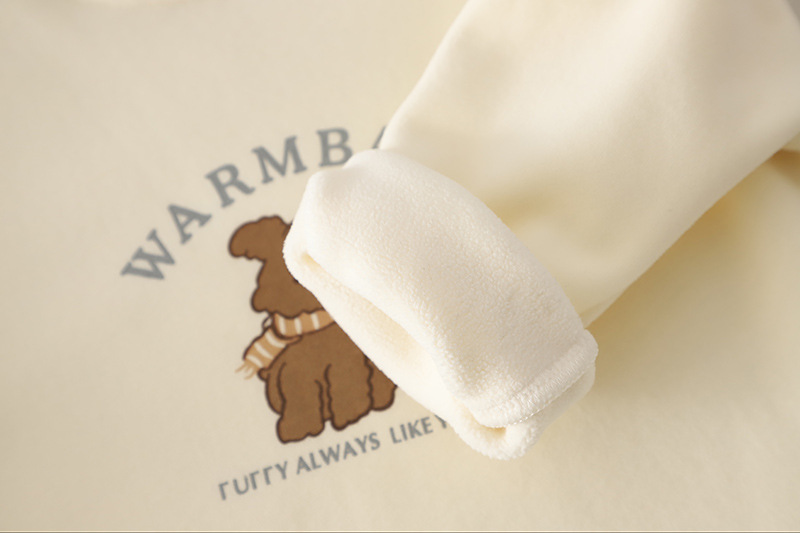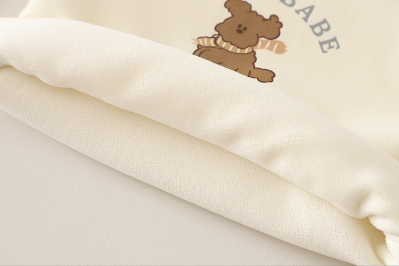 -Bluziță/hanorac în nuanță caldă de crem, cu imprimeu central cu ursuleț și inscripția “Farm Bear”, care adaugă o notă jucăușă și drăguță. Căptușeala moale de la interior oferă confort la purtare.