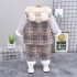 Set matlasat de 3 piese cu vestă cu glugă pufoasă, hanorac și pantaloni Plaid Explorer