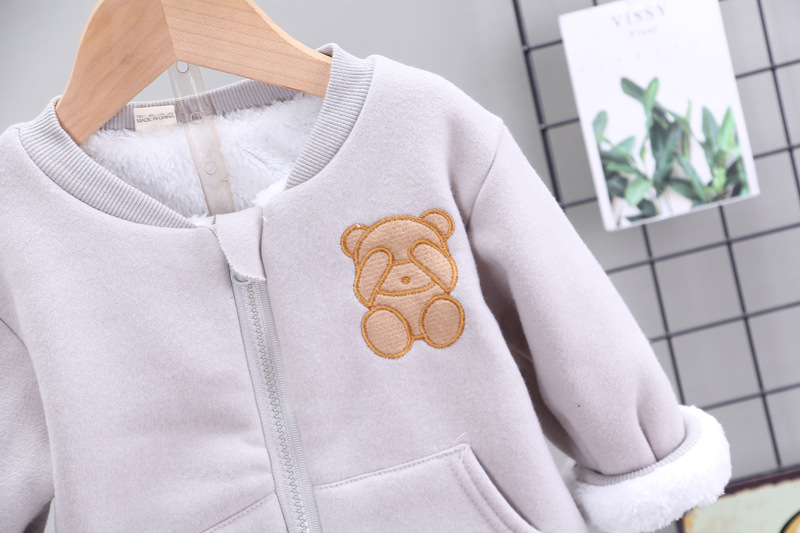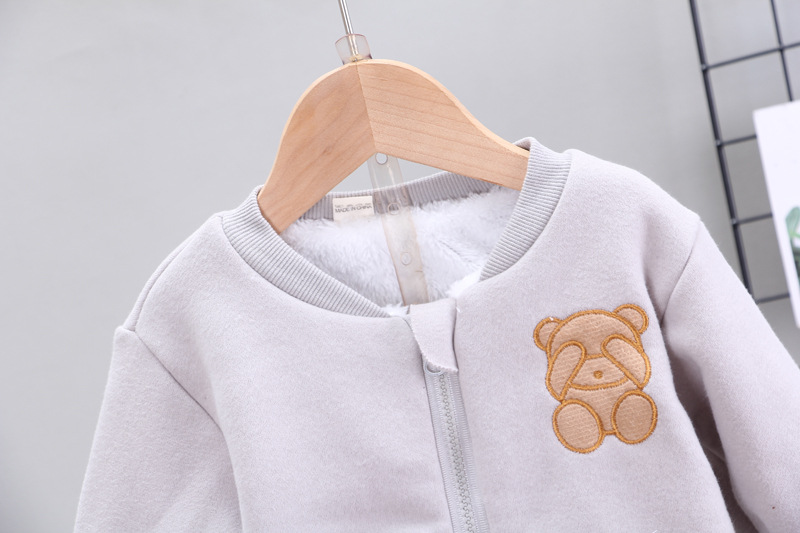 – Hanorac matlasat în culoare gri deschis, cu fermoar practic pe toată lungimea pentru îmbrăcare ușoară. Modelul are o croială lejeră, închidere cu fermoar și o aplicație plușată pe o parte.
