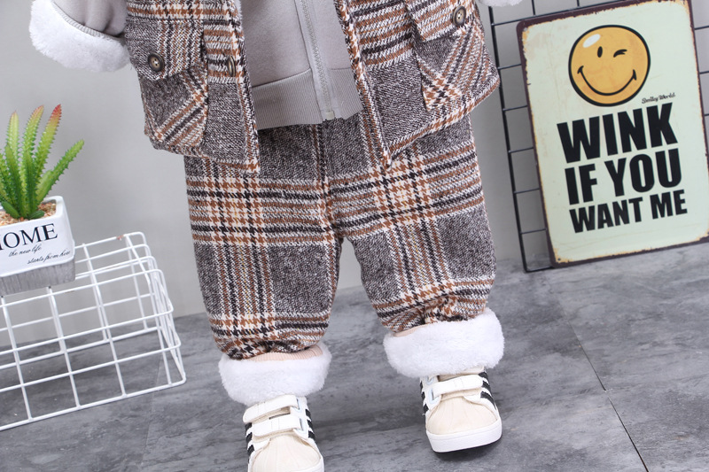 – Pantaloni cu model în carouri, asortați cu vesta pentru un look complet. Au talie elastică pentru confort, căptușeală moale pe interior și manșete îndoite care oferă căldură și stil. Materialul este gros și potrivit pentru lunile reci.