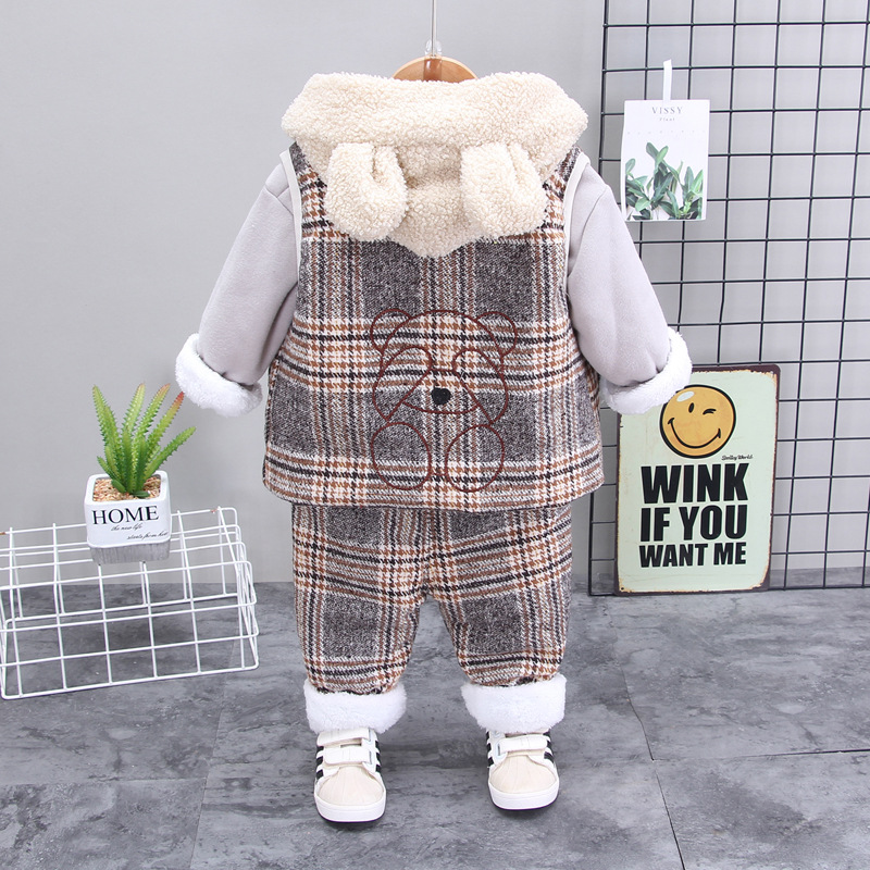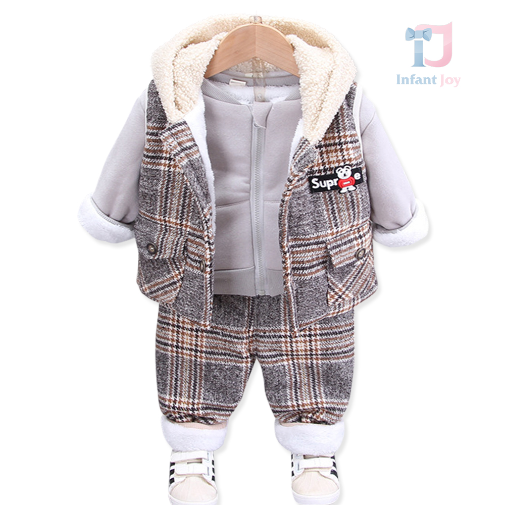 🧸 Set din 3 piese, creat pentru a oferi căldură, confort și stil în zilele reci. Modelul combină materiale moi și motive clasice în carouri – alegerea perfectă pentru micii exploratori.