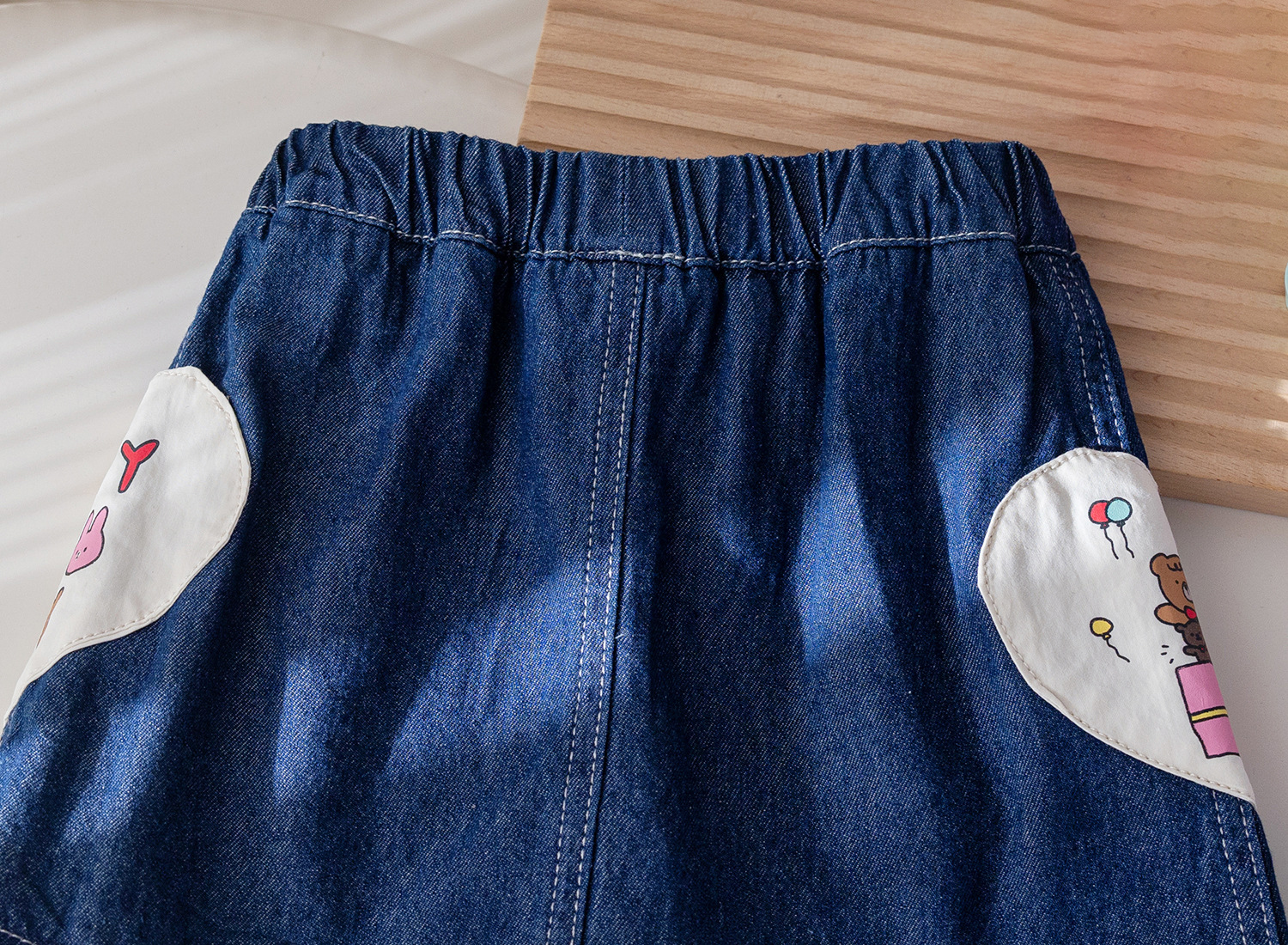 – Fustă din denim într-o nuanță intensă de albastru, realizată dintr-un material moale și confortabil. Modelul are talie elastică pentru un plus de comoditate și îmbrăcare ușoară. Accentele sunt reprezentate de cele două buzunare laterale cu aplicație și mici detalii colorate care completează aspectul jucăuș. Croiala este ușor evazată și potrivită pentru mișcare și joacă.