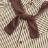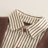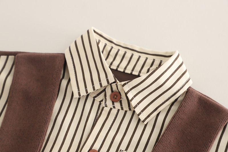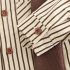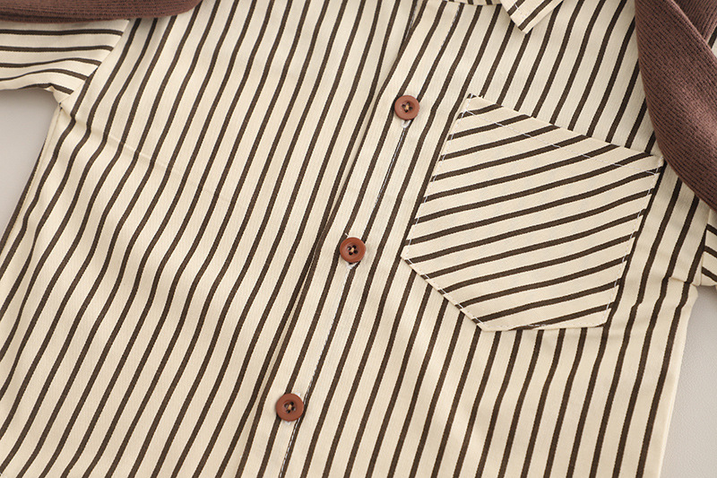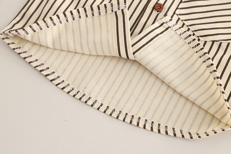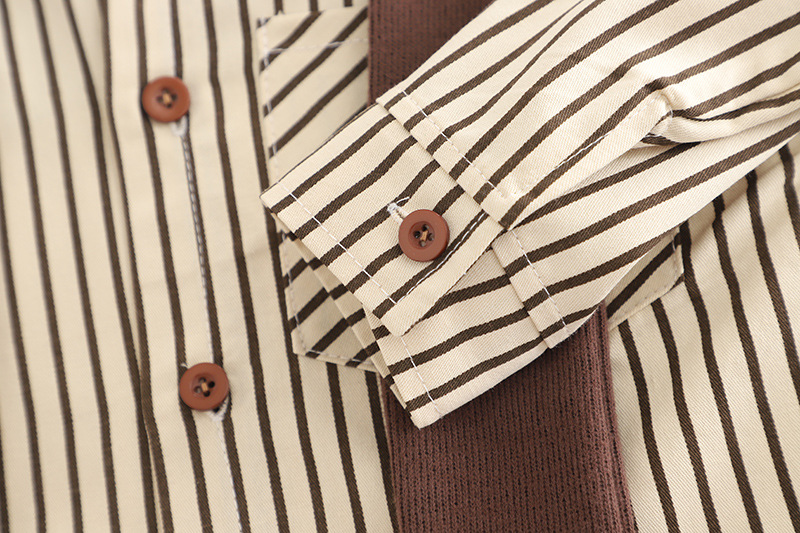 – Cămașă cu mânecă lungă, în dungi bej-maro, realizată dintr-un material din bumbac ușor și plăcut la atingere. Modelul este prevăzut cu guler clasic, închidere cu nasturi și buzunar frontal, oferind un aspect îngrijit și elegant.