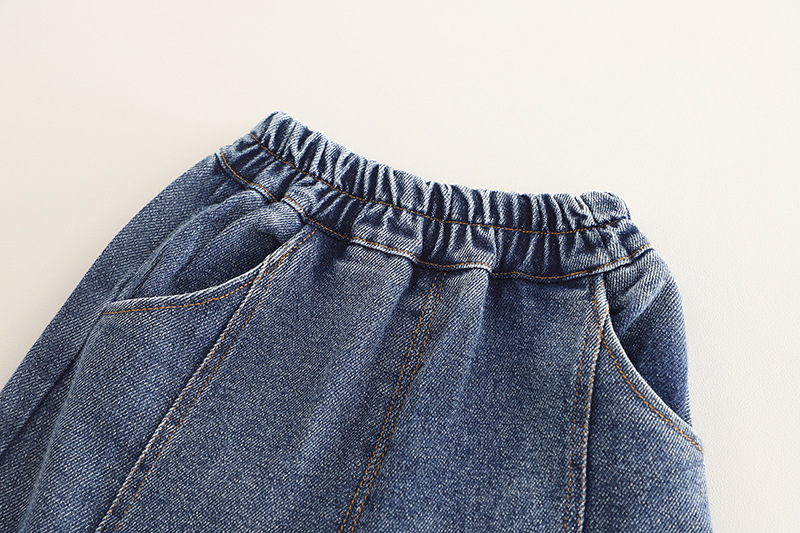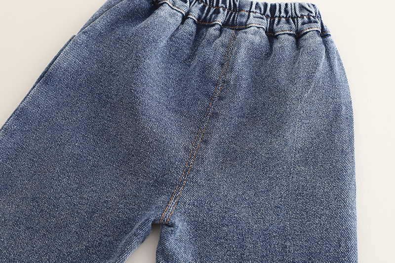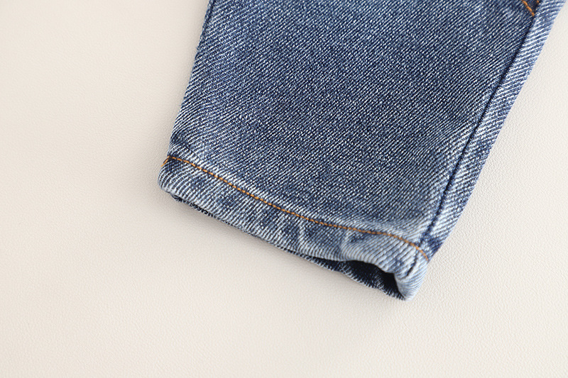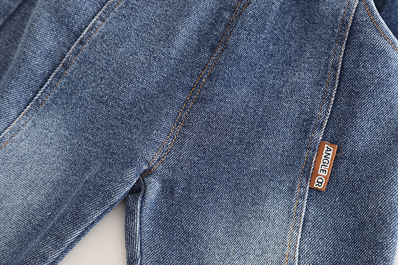 – Pantaloni din denim, în albastru clasic, realizați dintr-un material moale și confortabil. Modelul are două buzunare, talie elastică pentru confort și libertate de mișcare, precum și o croială modernă, potrivită atât pentru ținute de zi cu zi, cât și pentru ocazii speciale.