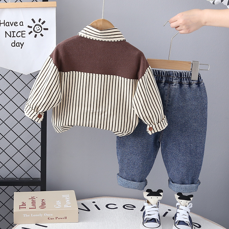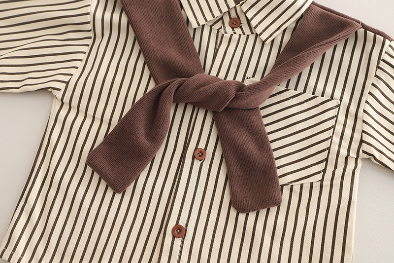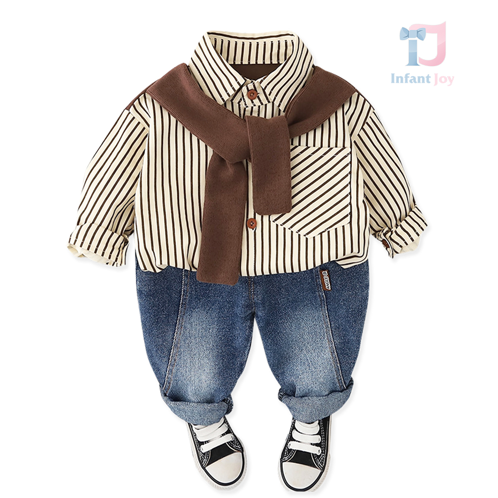 Set modern de 2 piese format din cămașă în dungi cu eșarfă aplicată și pantaloni din denim Mr Chocolate