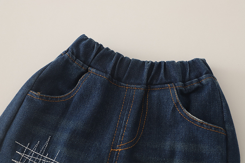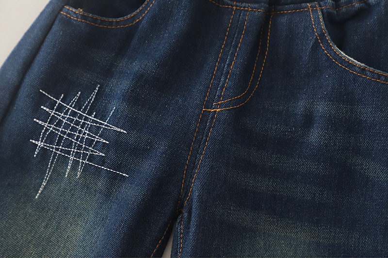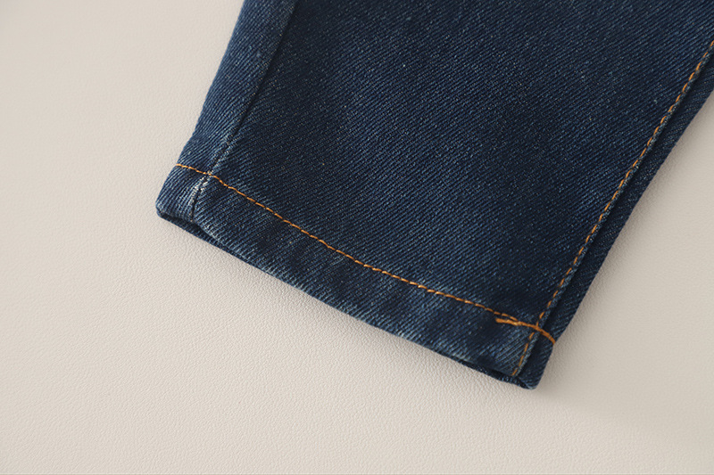 – Pantalon din denim cu talie elastică, care asigură confort și libertate de mișcare. Pantalonul este decorat cu cusături fine, ce oferă un finisaj stilat, și două buzunare.