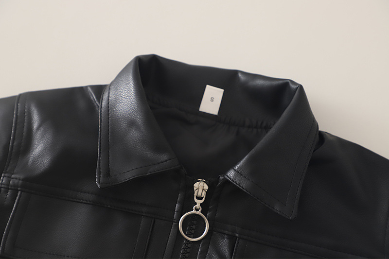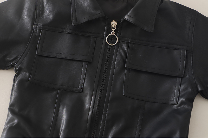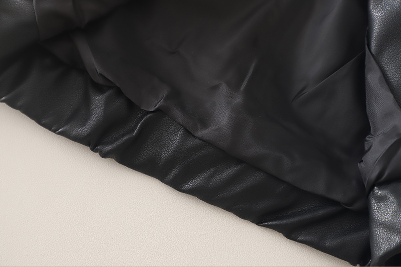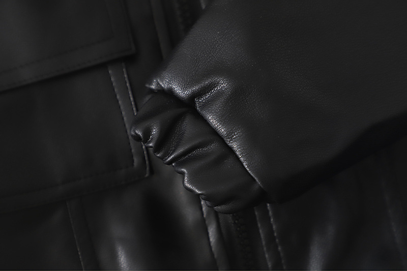 – Geacă din piele ecologică cu guler clasic și închidere cu fermoar în față, confecționată din piele ecologică de înaltă calitate, într-o nuanță de negru. Geaca are buzunare decorative în partea superioară, care completează designul modern și adaugă un caracter urban aparte. Manșetele și tivul sunt concepute pentru a oferi confort și o potrivire bună.