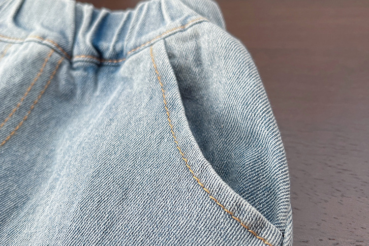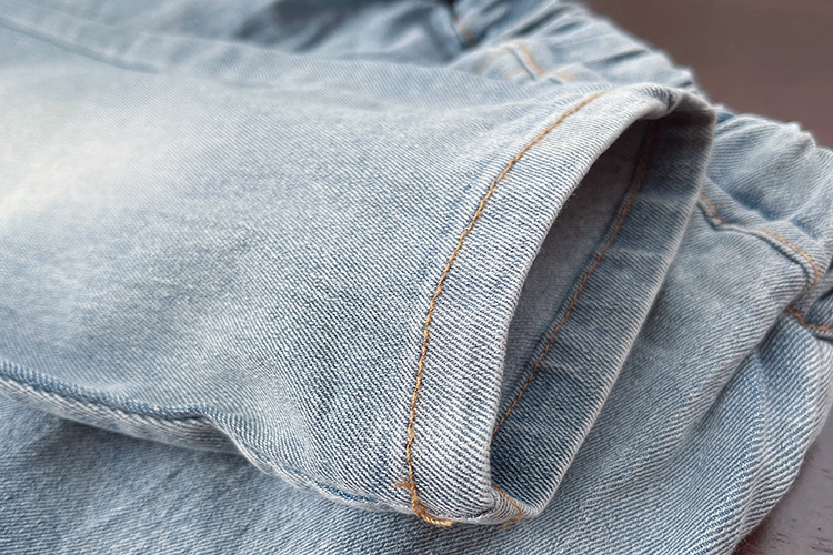 -Pantaloni din denim de bumbac cu elasticitate ușoară – oferă libertate de mișcare. Talie elastică pentru îmbrăcare ușoară + craci îndoiți pentru un plus de stil și două buzunare funcționale.