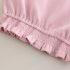 -Pantaloni asortați cu bluza, cu talie elastică și volănașe decorative pe craci, care completează designul diafan al părții superioare.