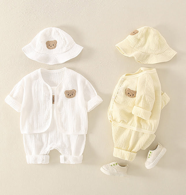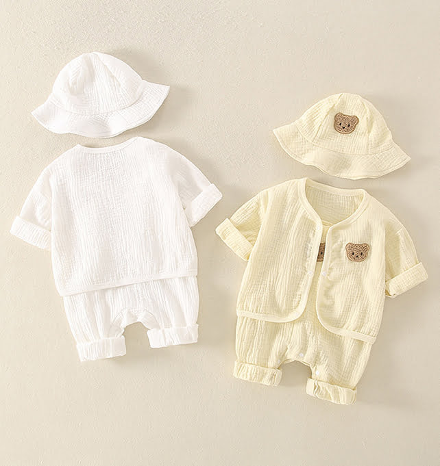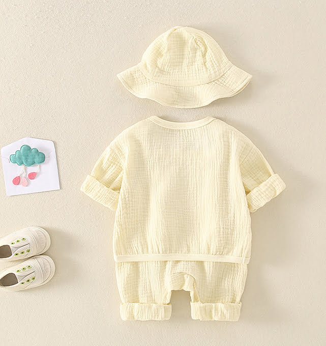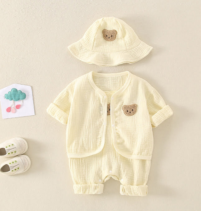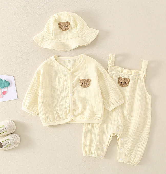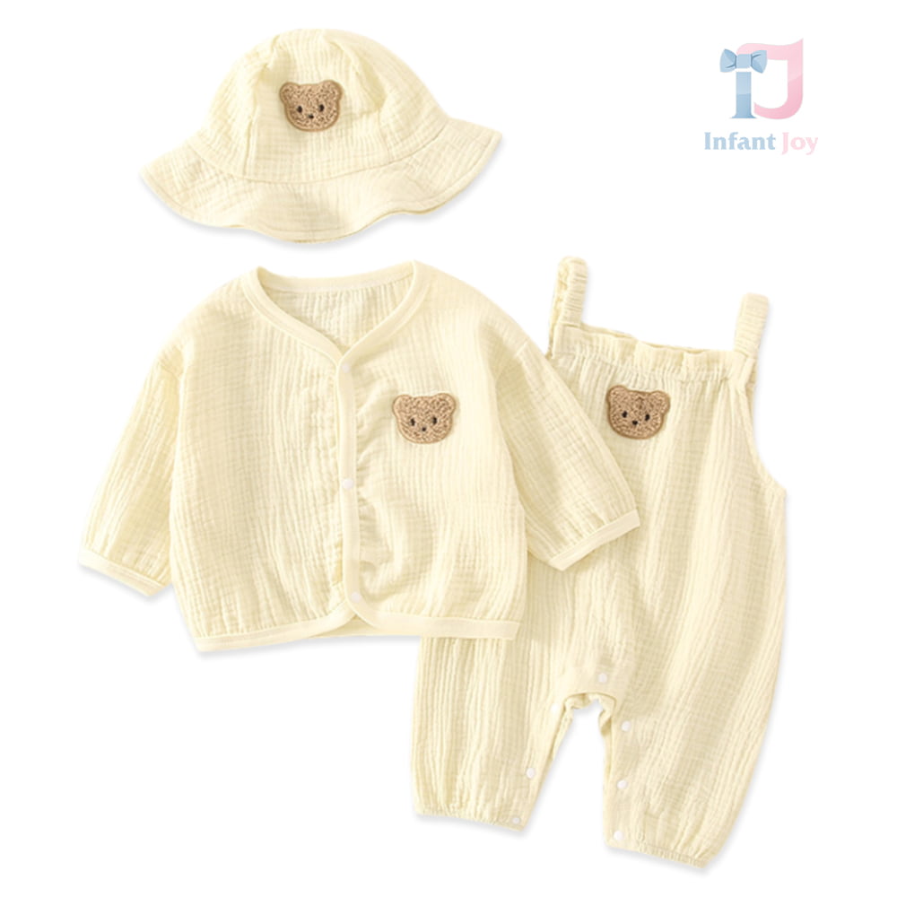 Set muselină de 3 piese cu salopetă și pălărie Baby Bear Beige