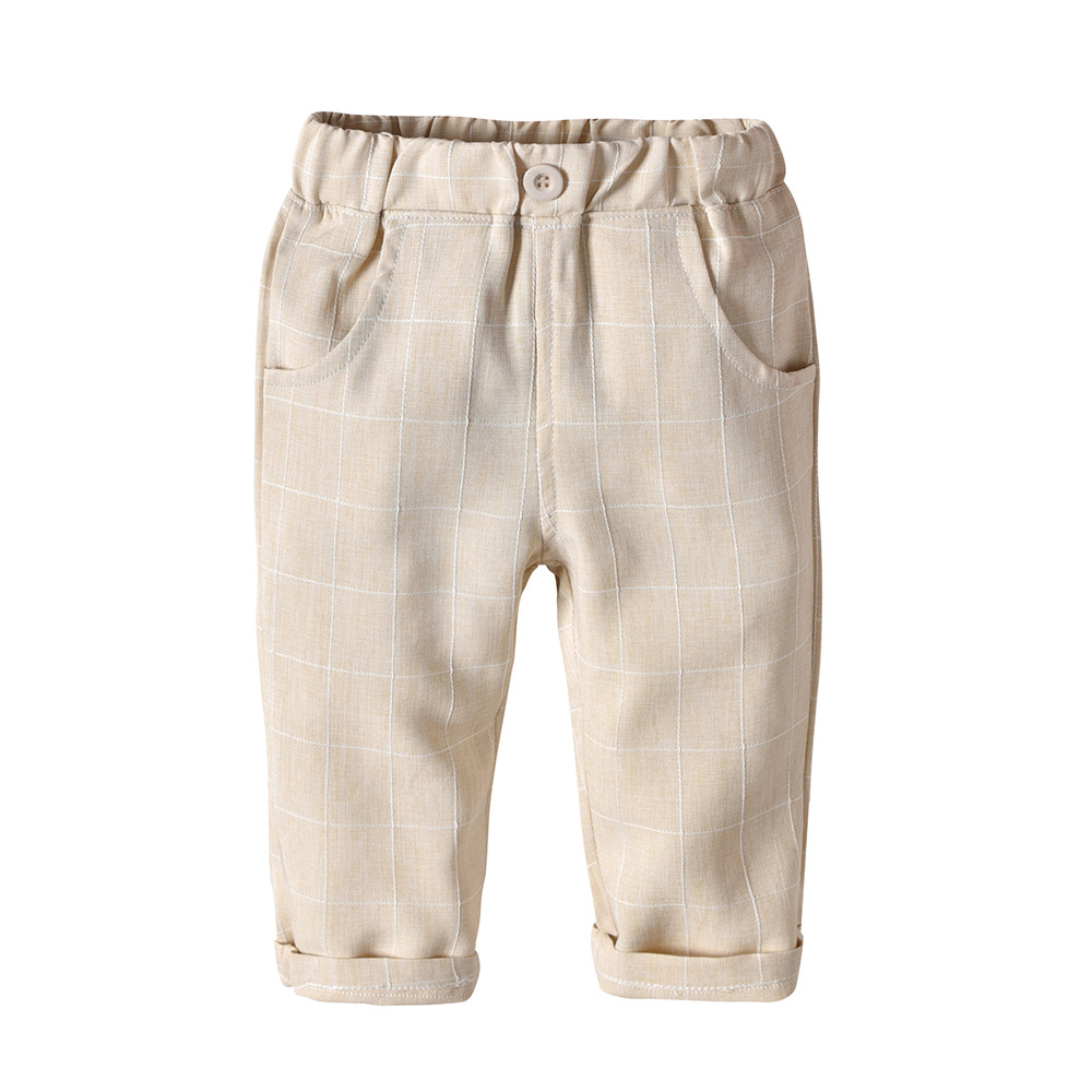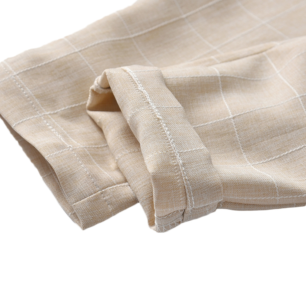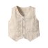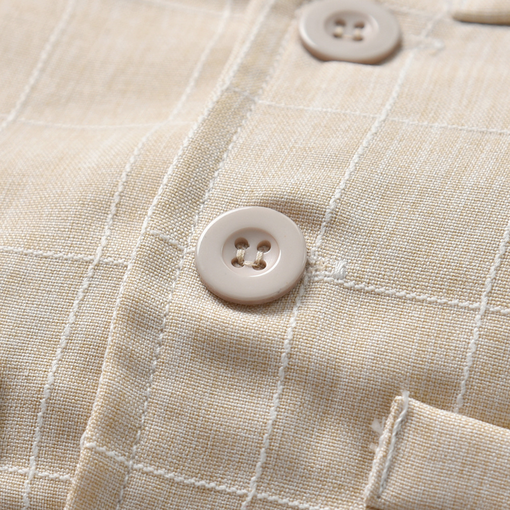 – Vestă din material rezistent, în culoare bej, cu un model discret în carouri. Croială cu tiv ușor rotunjit, buzunare decorative și nasturi mari în față – oferă ținutei un plus de stil.