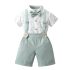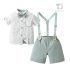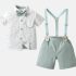 Set oficial de 4 piese din cămașă cu guler clasic, papion, pantaloni scurți și bretele Modern Gent