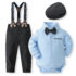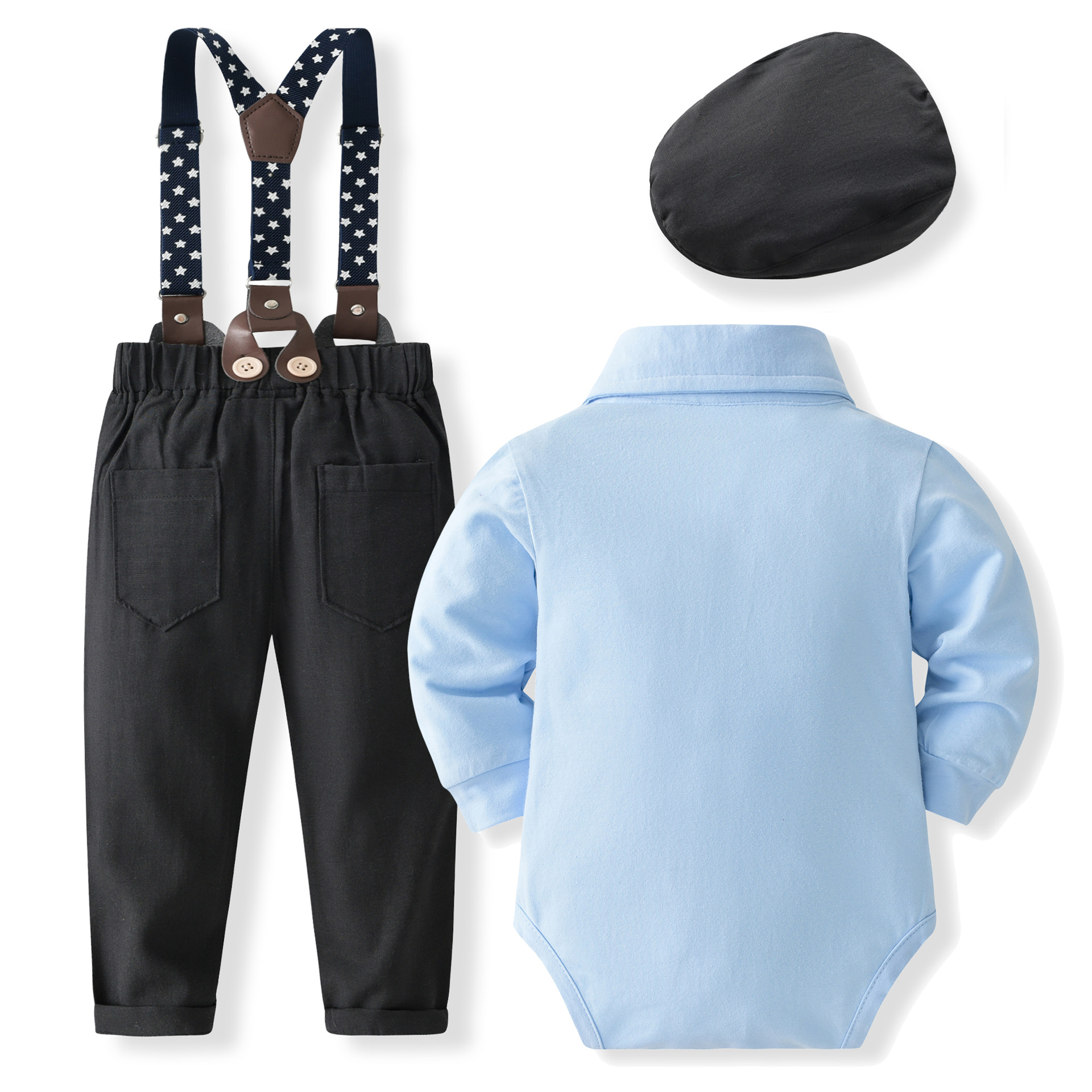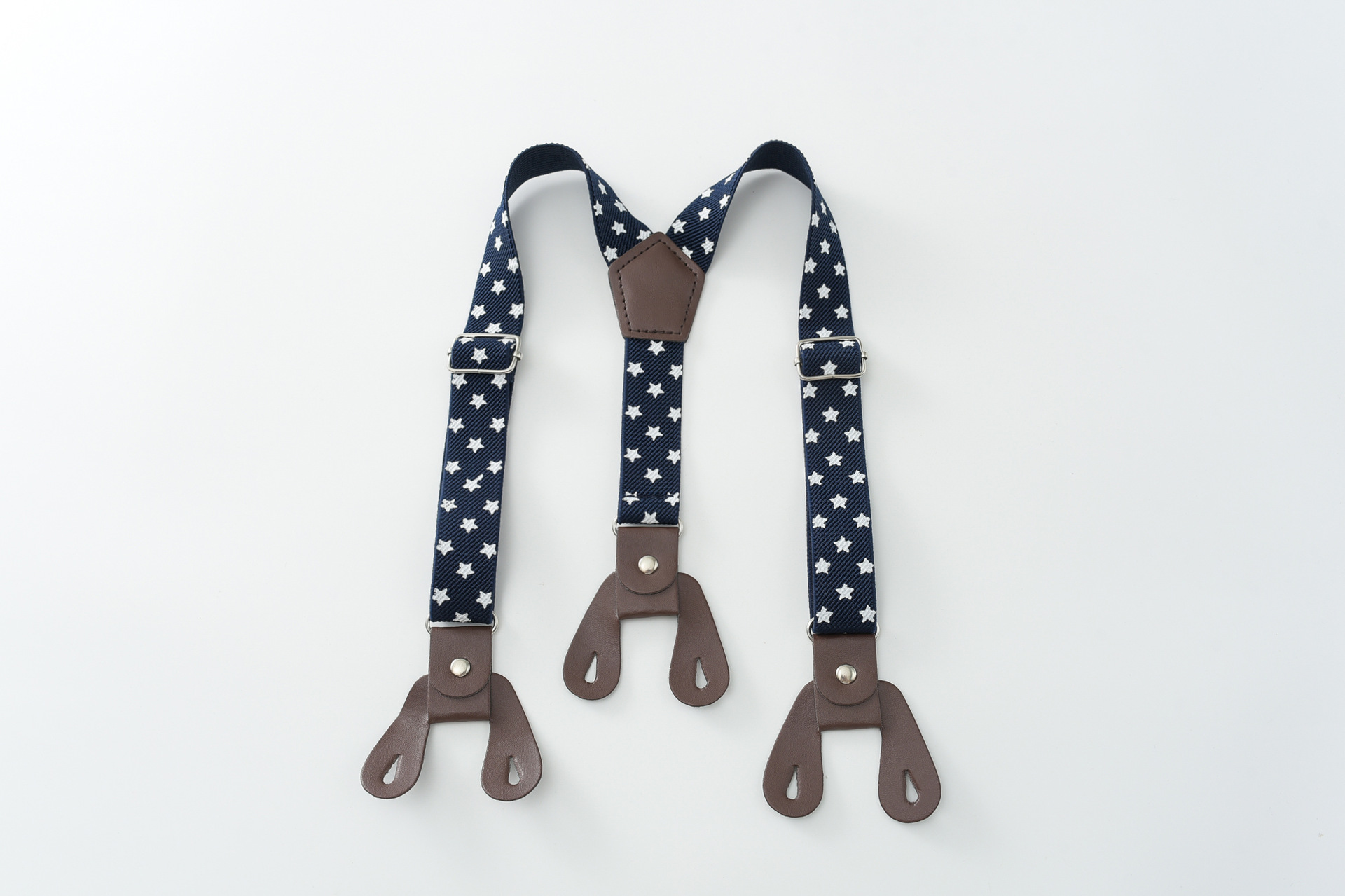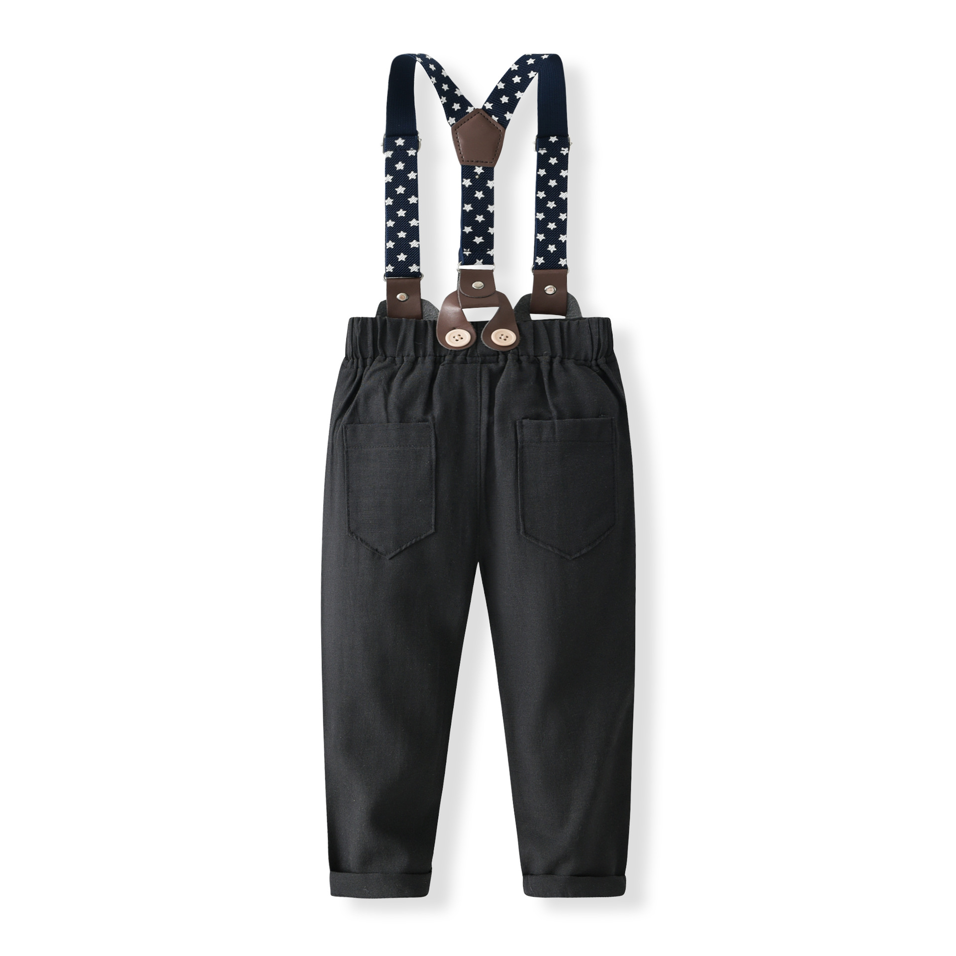 -Bretele decorate cu steluțe și detalii din piele, care se prind de pantaloni cu nasturi.