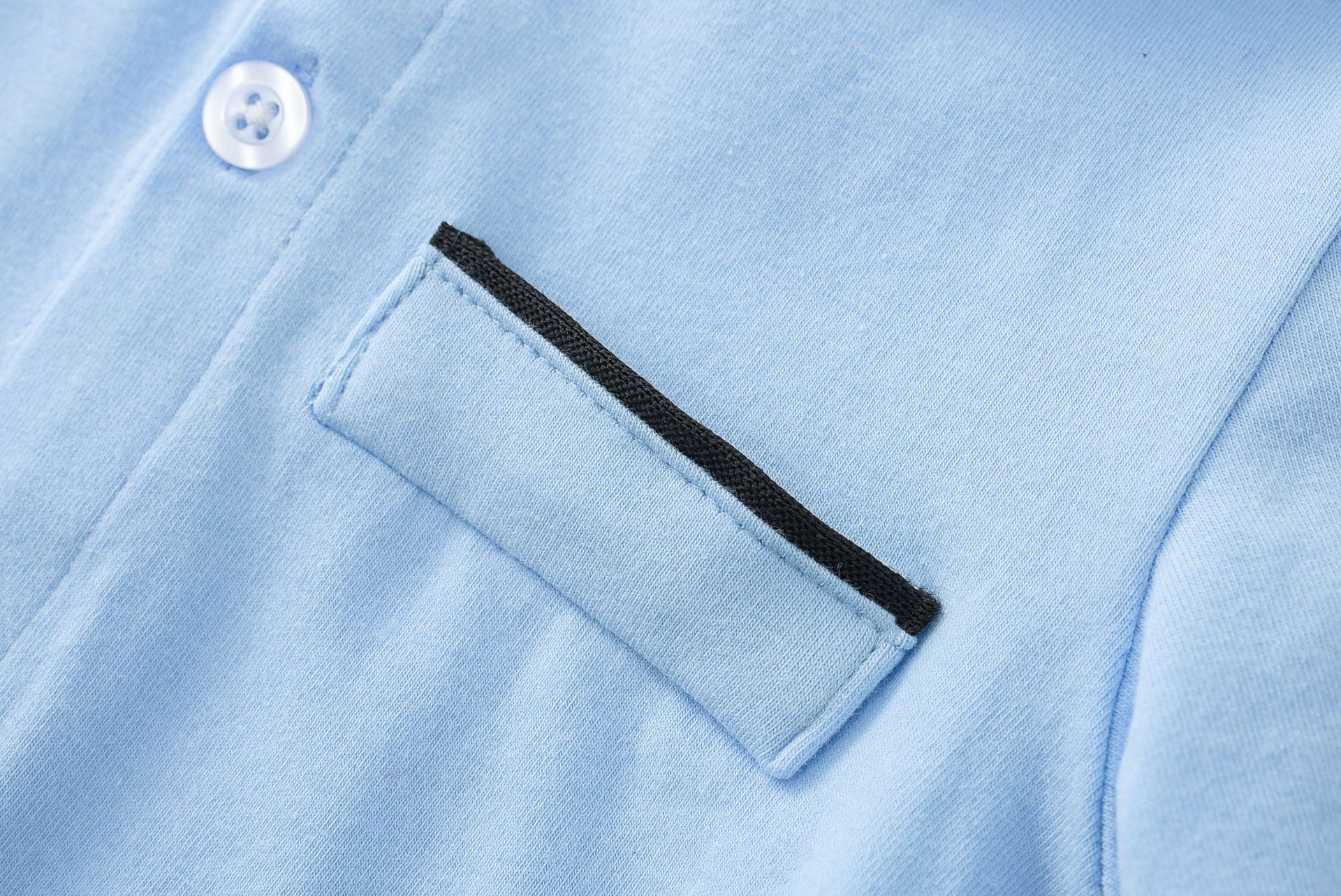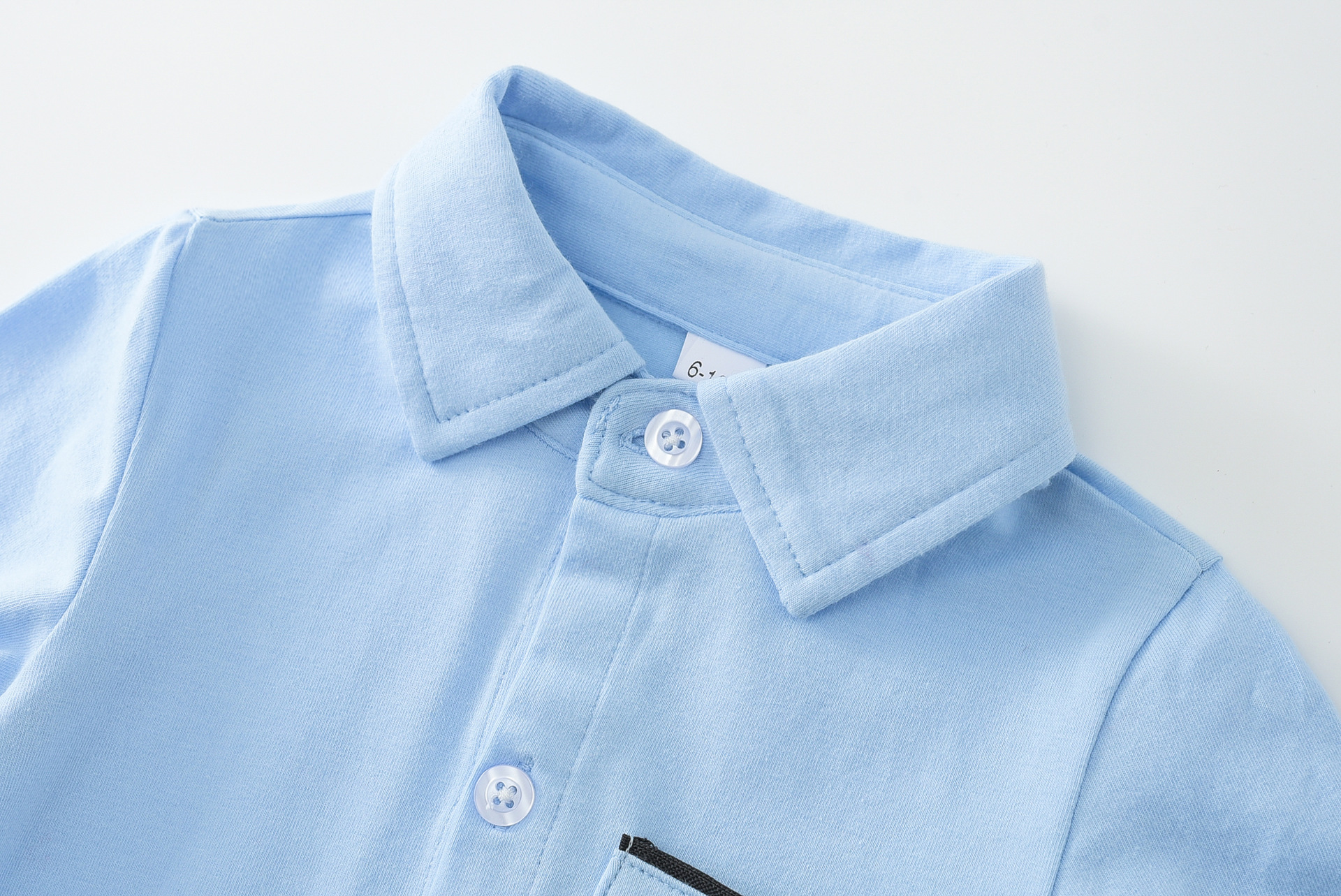-Cămașă/body albastră, confecționată din bumbac de înaltă calitate, cu închidere frontală și capse „Tic Tac” în partea de jos, guler clasic și un buzunar decorativ pe o parte.