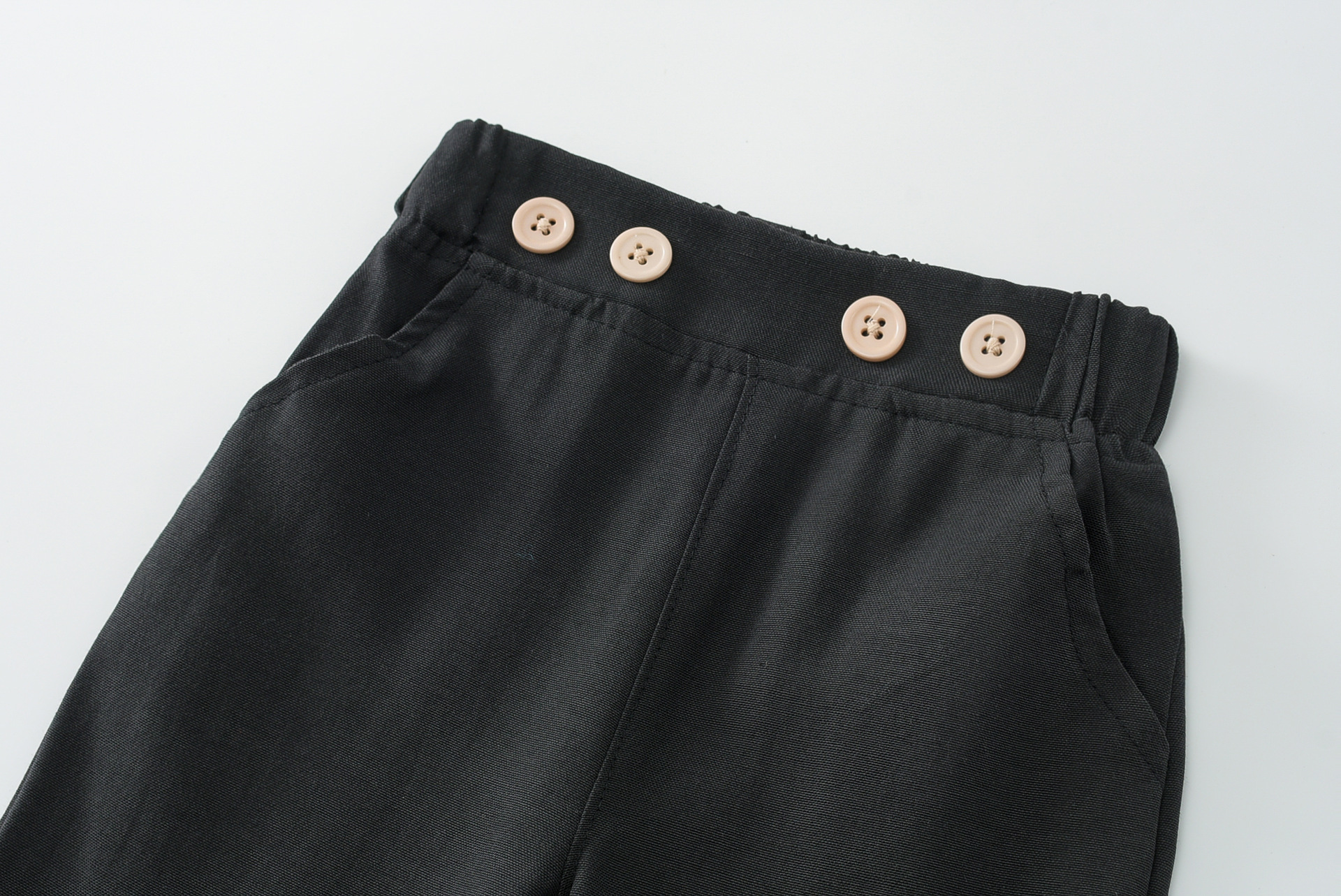 -Pantaloni cu croială dreaptă, buzunare și talie elastică pentru un confort sporit.