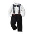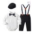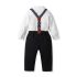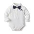 – Cămașă/body albă, din bumbac de calitate superioară, cu închidere frontală și capse în partea de jos, guler clasic și buzunar decorativ pe o parte.