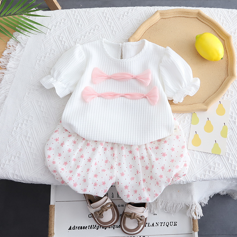 Set cu efect de vafe, mâneci bufante și elemente 3D Pink Ribbon