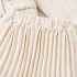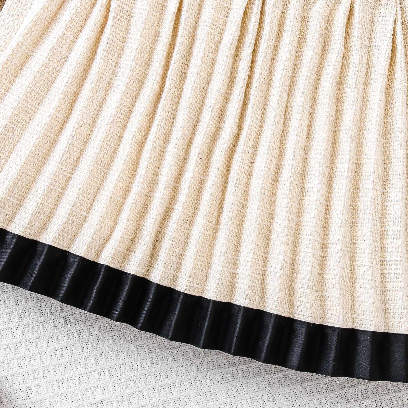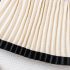 – Fustă plisată, tot în ton crem, confecționată din același material boucle pentru o ținută armonioasă. Este finisată cu o bandă neagră la tiv, care adaugă profunzime și contrast elegant. Talia elastică oferă confort la purtare.