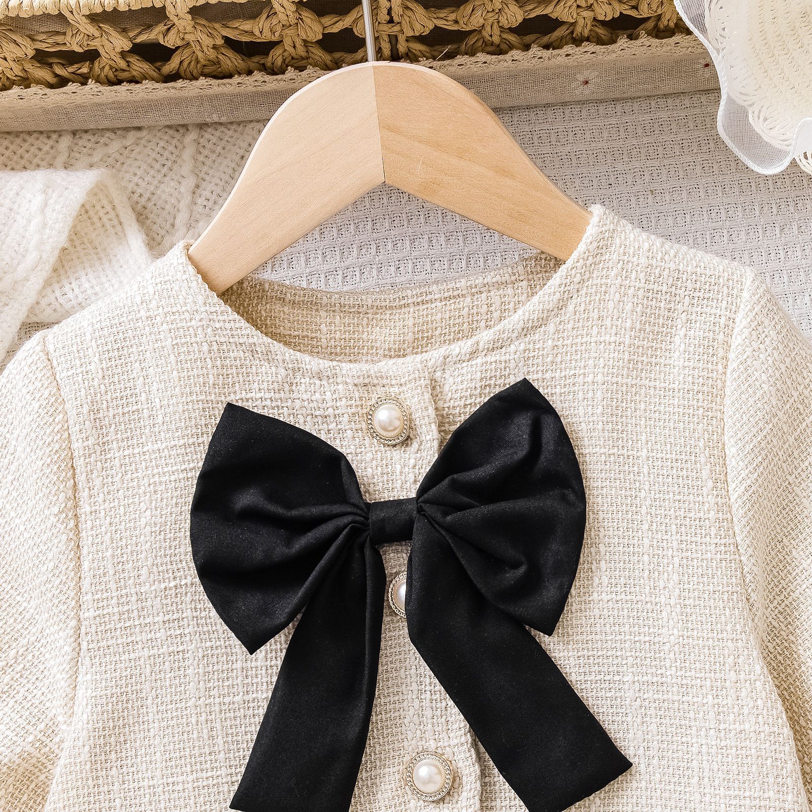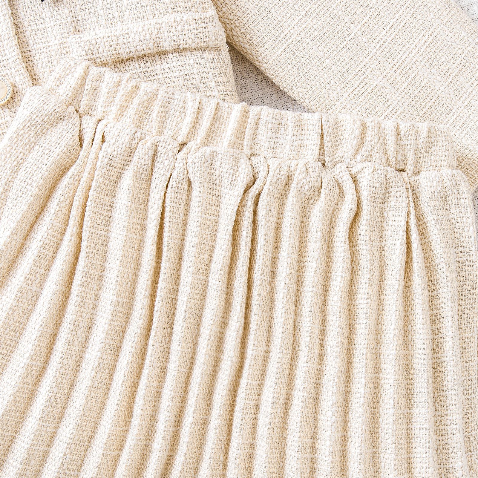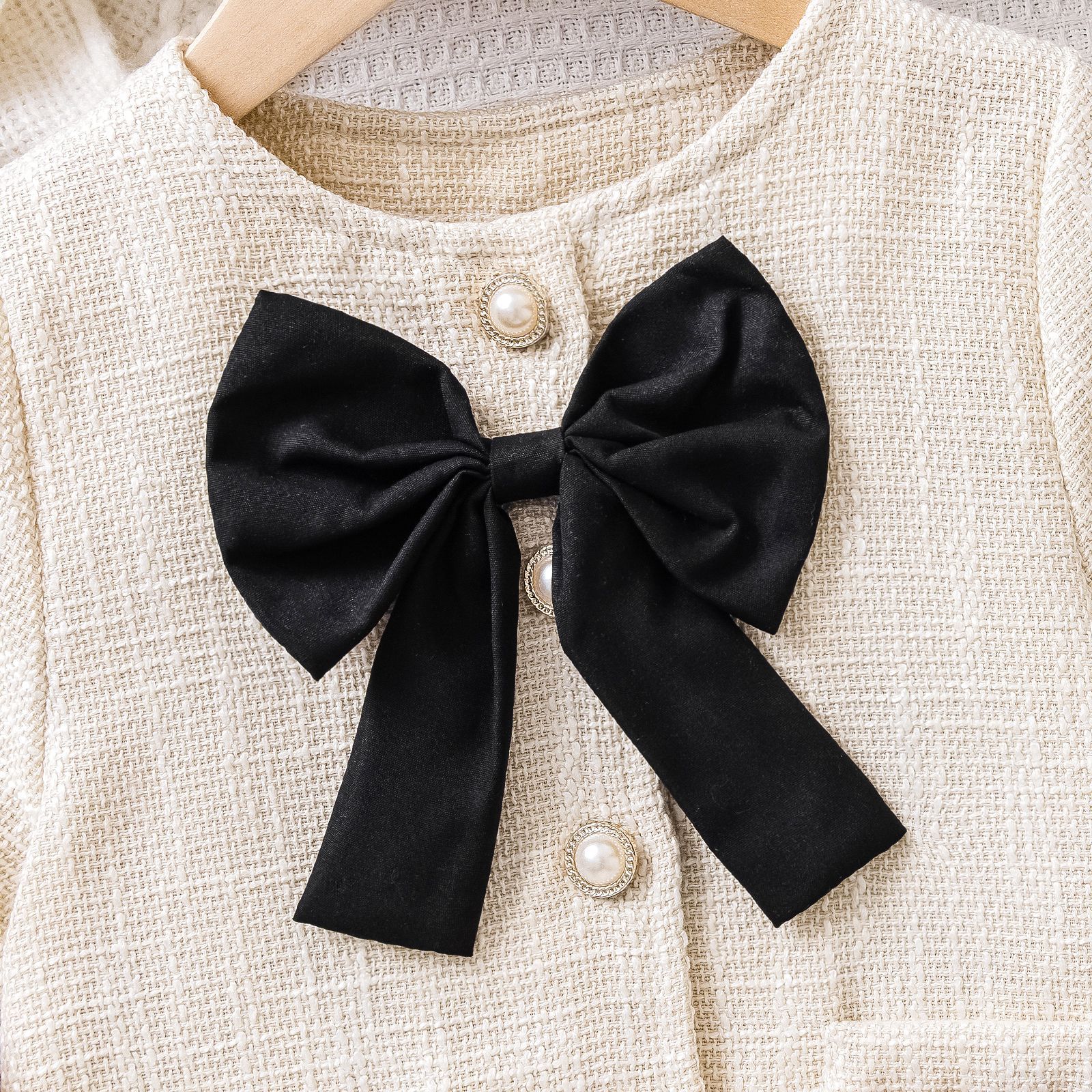Set premium de 2 piese cu blazer cu nasturi cu perle, fundiță 3D și fustă plisată Mon Amour