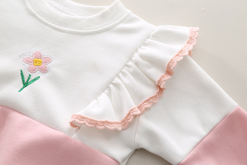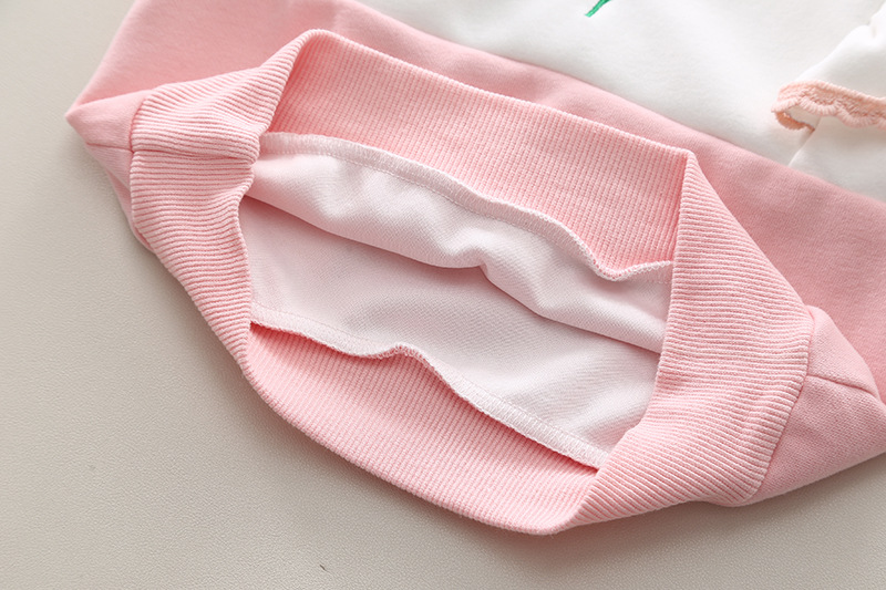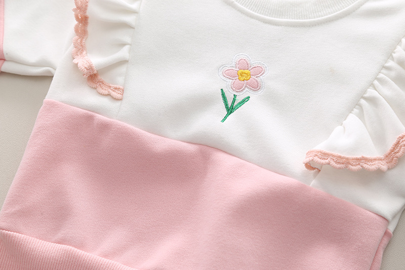 – Bluză cu mânecă lungă, din material de înaltă calitate, în combinație de alb și roz. Model cu bucle decorative de în partea din față și un element brodat care completează aspectul.
